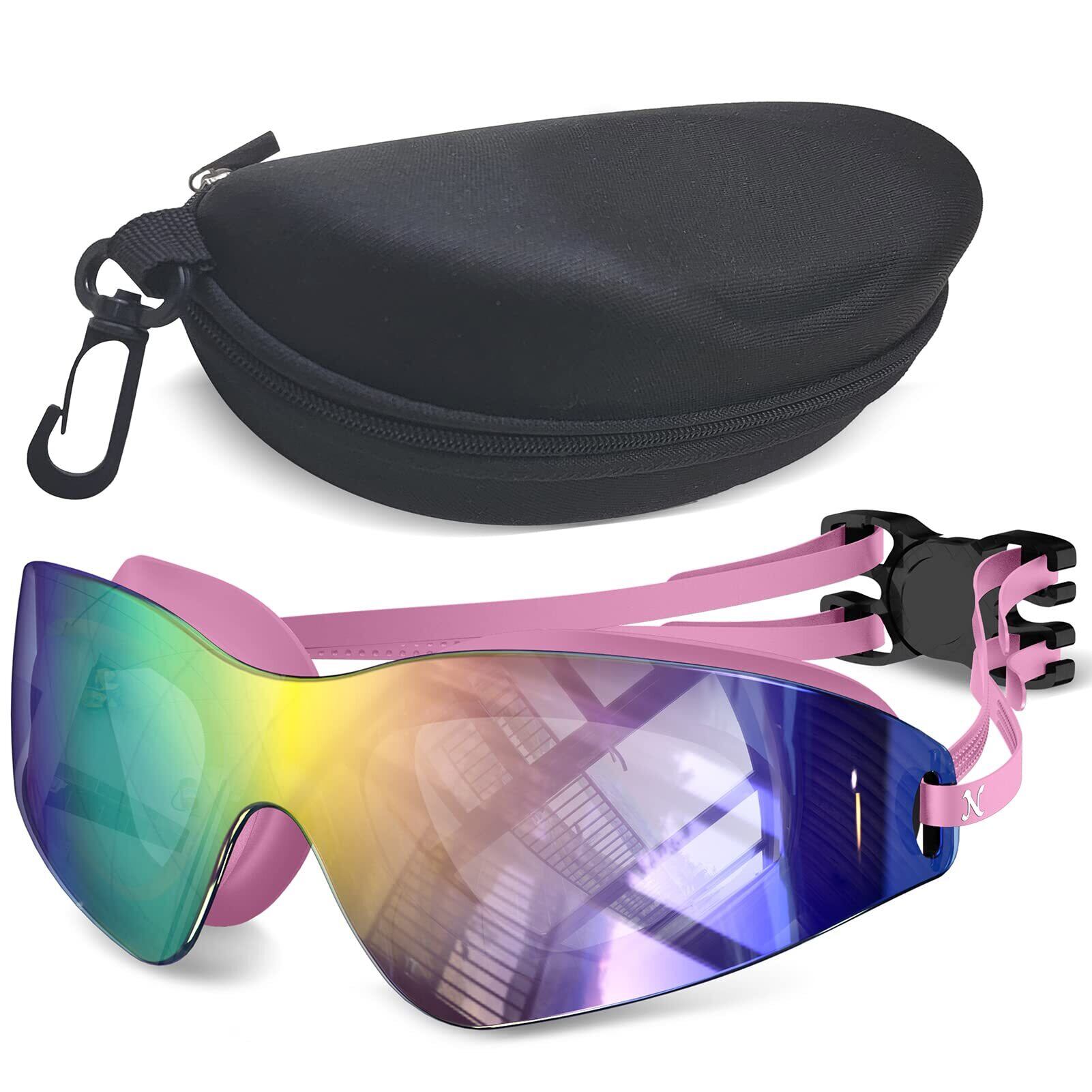 【トッププロテクション】Nabevin大人用 スイミングゴーグル、高品質のPVC フレームとレンズ、偏光コーティングで UVAとUVB光線をブロックし、紫外線を99.9%カット、太陽のまぶしさに対する確かなバリアを確保するミラーレンズを備えています。広いパノラマレンズデザインを通してクリアな水が見えます。 プロ仕様のゴーグルは、屋内と屋外のプール用に設計されています。