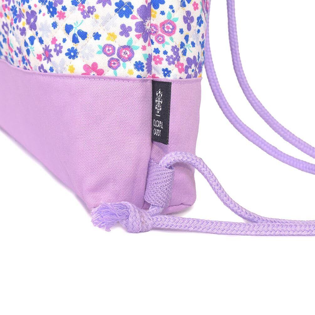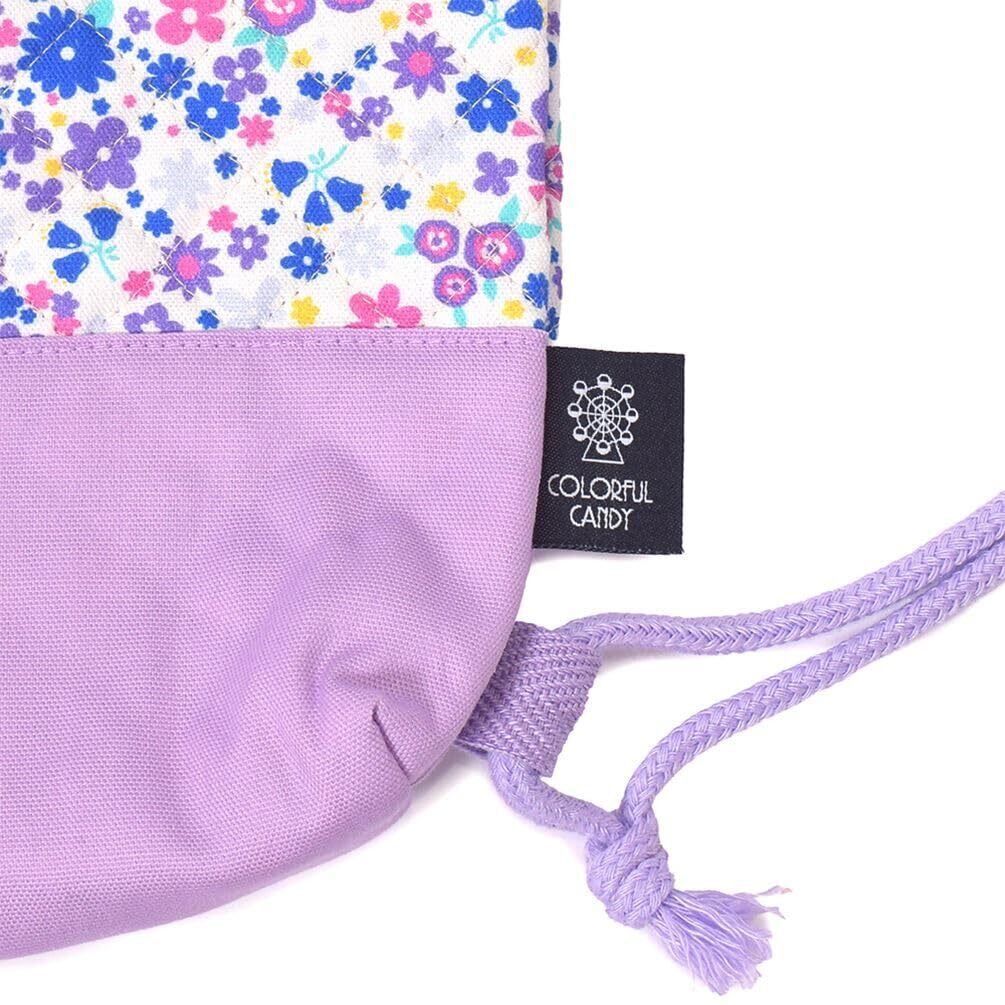 COLORFUL CANDY STYLE ナップサック マチ付き 女の子 小学生 おしゃれ キルティング 通園 通学 持ち手付き フラワー模様のエアリーシャワー(ラベンダー) N0448200