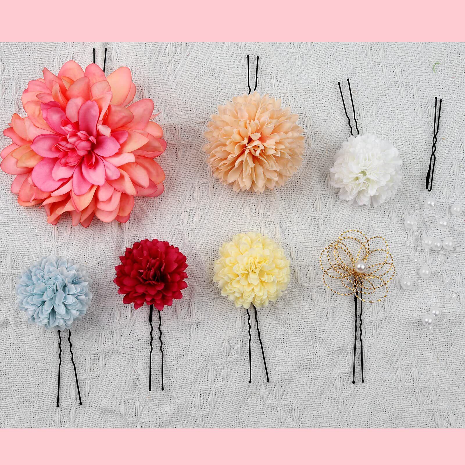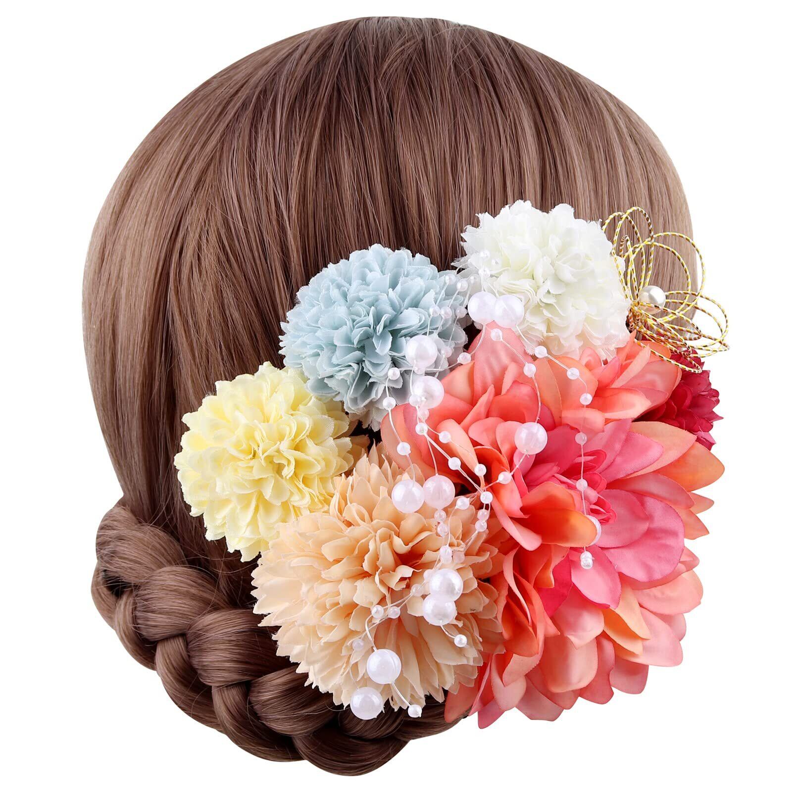 Mangoton 髪飾り 8点セット 人気 成人式 水引 金箔 銀箔 組紐 ロープ ゴールド シルバー ヘアアクセサリー 前撮り 振袖 卒業式 結婚式 和装 浴衣に ブライダル 花嫁 ヘッドパーツ レッド