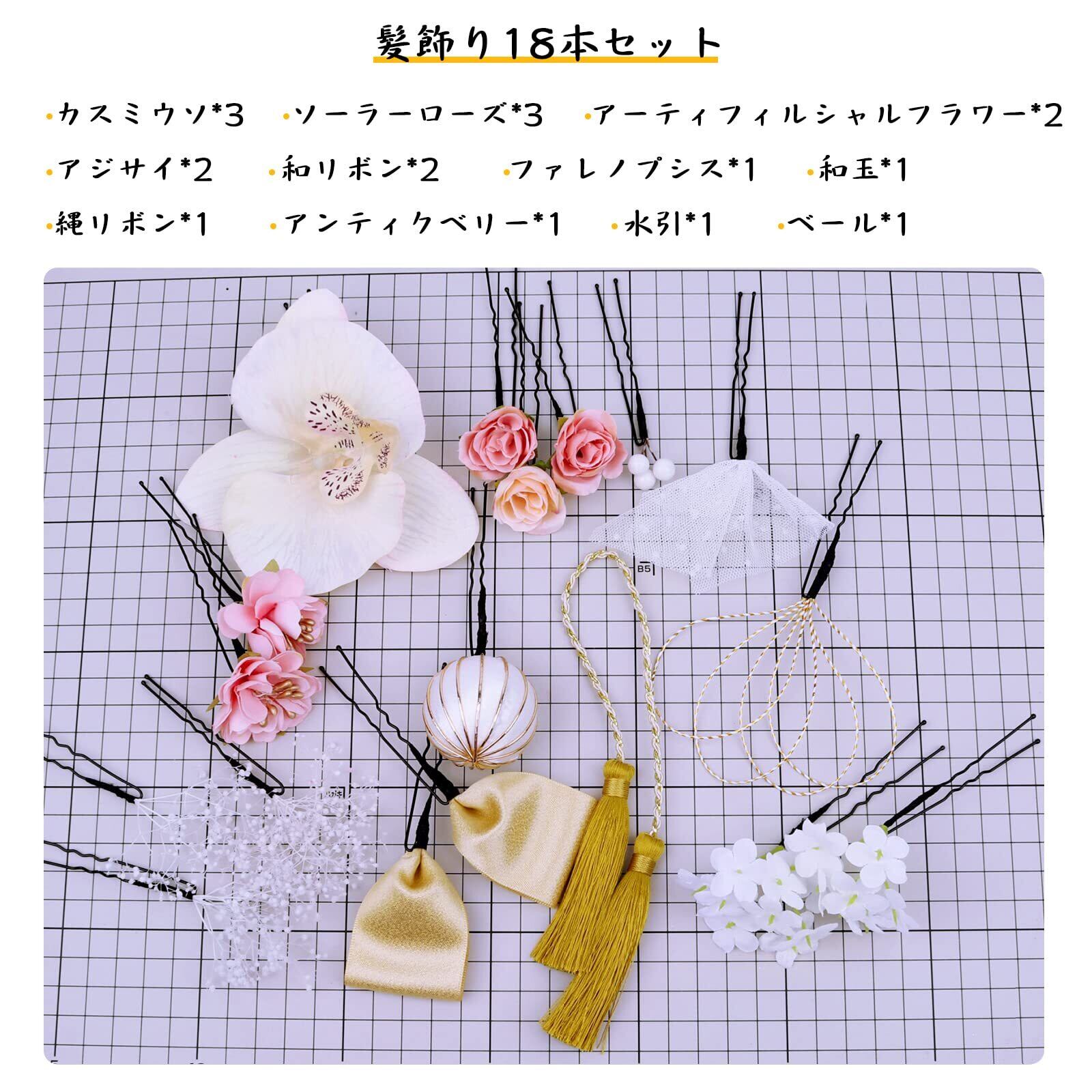 【数量限定】[Mangoton] 【髪飾り 18点セット】成人式 ドライフラワー ゴールド ホワイト 造花 ヘッドドレス ウェディング 結婚式 ブライダル 卒業式