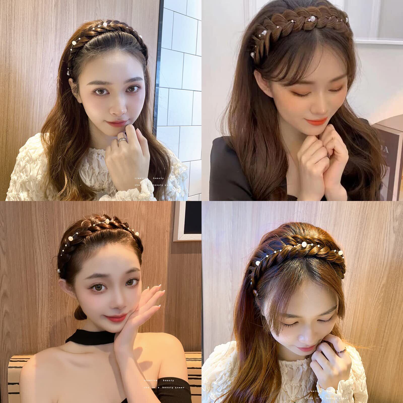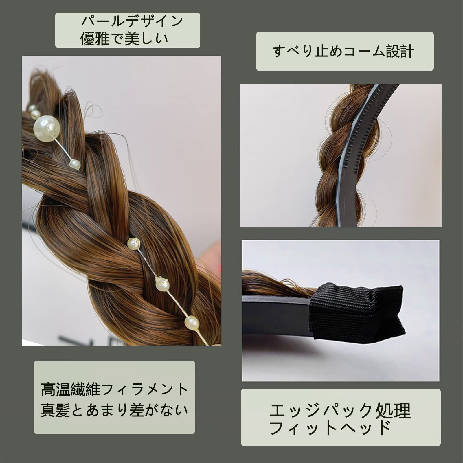 NALaina 三つ編み 編み込みカチューシャ 前髪 かわいい髪留め レディース 幅広 ヘアバンド 滑り止め 痛くない ヘアアクセサリー ブラウン