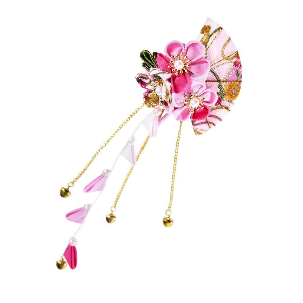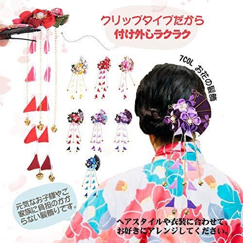 【新着商品】FLORICA 髪飾り 七五三 花 成人式 振袖 卒業式 和装 つまみ細工 袴 浴衣 着物 髪 飾り 鈴 髪留め 和柄 収納袋 ギフトポックス付き 7カラー (ピンク)
