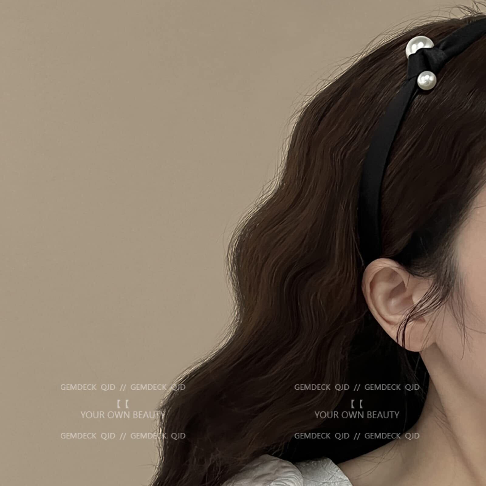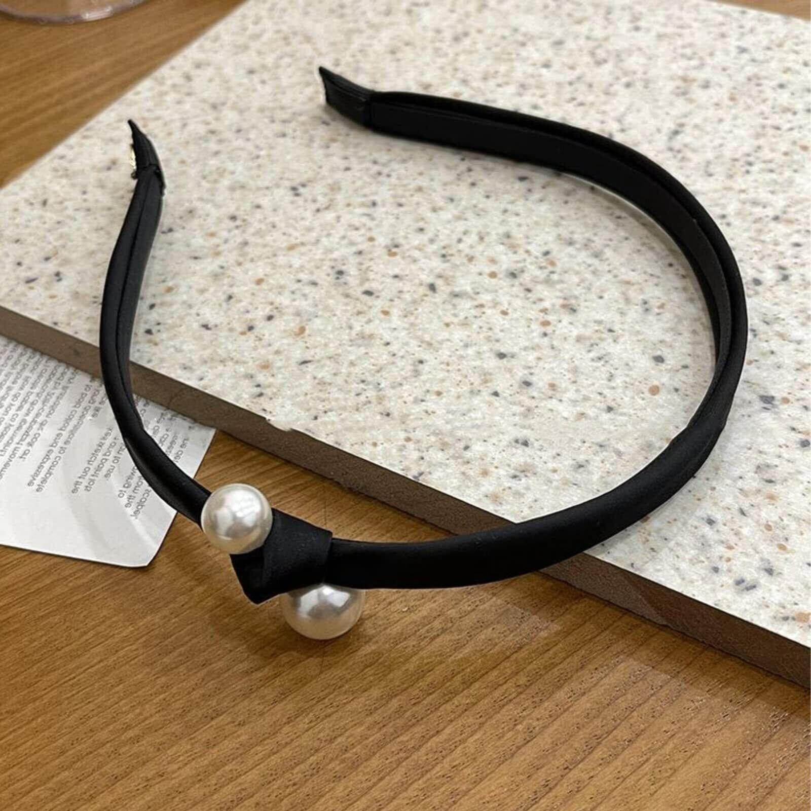 EZ PEACH カチューシャ 結び シンプル リボン パール 細め ヘッドアクセ ヘア デイリー ヘアアクセサリー カチューシャ パール 可愛い 前髪 髪留め 髪飾り 結婚式 発表会 入学式 (BLACK)