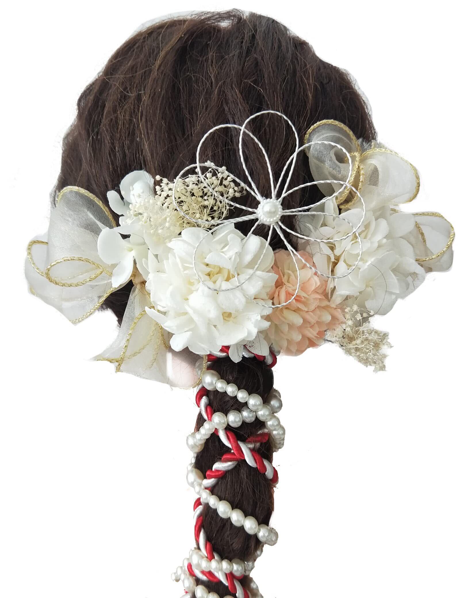 【使用場面多様】結婚式、卒業式、成人式、お正月、お祭り、花火大会など様々な式典での和服のみならず、洋服にもお似合いです。お花はUピンで、リボンはクリップでつけており、髪に優しく、脱着簡単!髪型に合わせて、お花の角度を調整することができ、アレンジも自由です。
