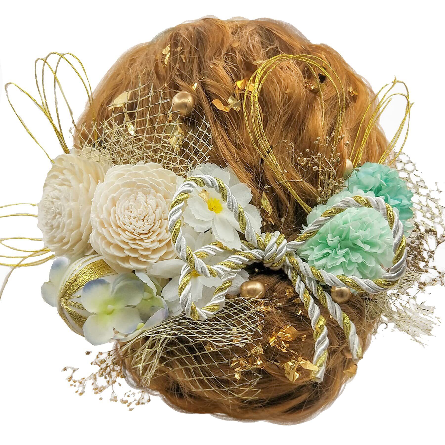 [JZOON] 8色展開 ドライフラワー 髪飾り ダリア 造花飾り 和玉 ヘアアクセサリー 成人式 水引 振袖 着物 卒業式 七五三 浴衣 袴 結婚式 かすみ草 和装 造花 手作り