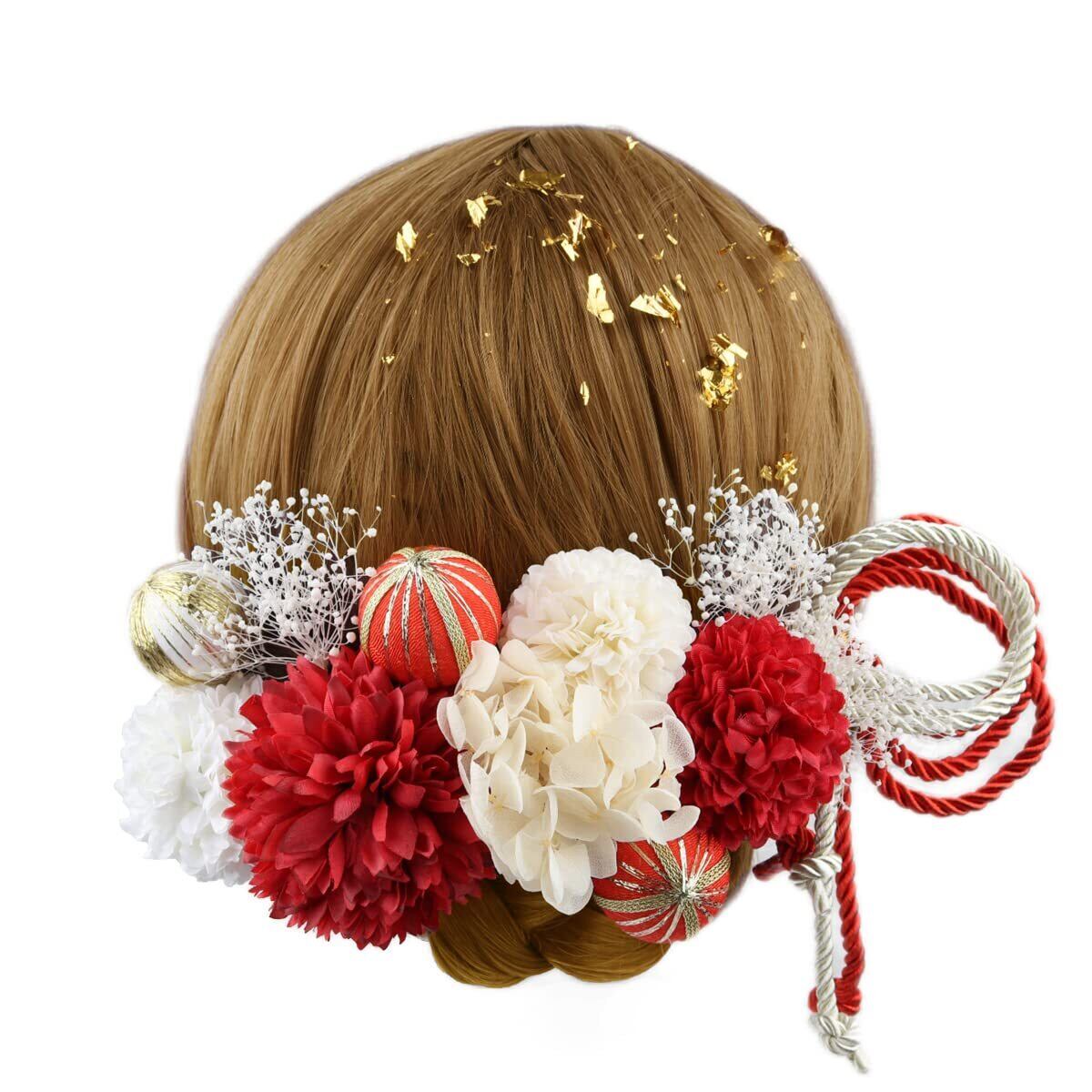 【人気商品】[funply] 髪飾り 成人式 金箔 結婚式 飾り紐 ゴールド 卒業式 七五三 浴衣に 和装 振袖 ドライフラワー プリザーブドフラワー