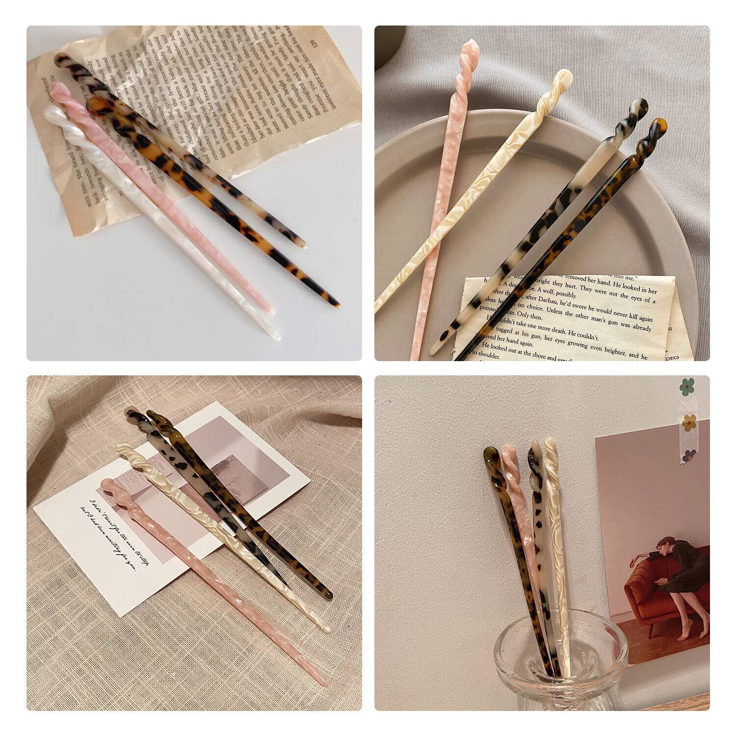 ZHEJIA 簪 和服【4枚入り】一本挿し 簪パーツ おしゃれ 髪留め 髪飾り ヘアアクセサリー 七五三 和装小物 結婚式 成人式 卒業式 白 ピンク アンバー