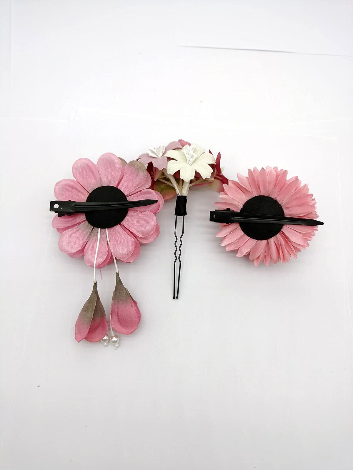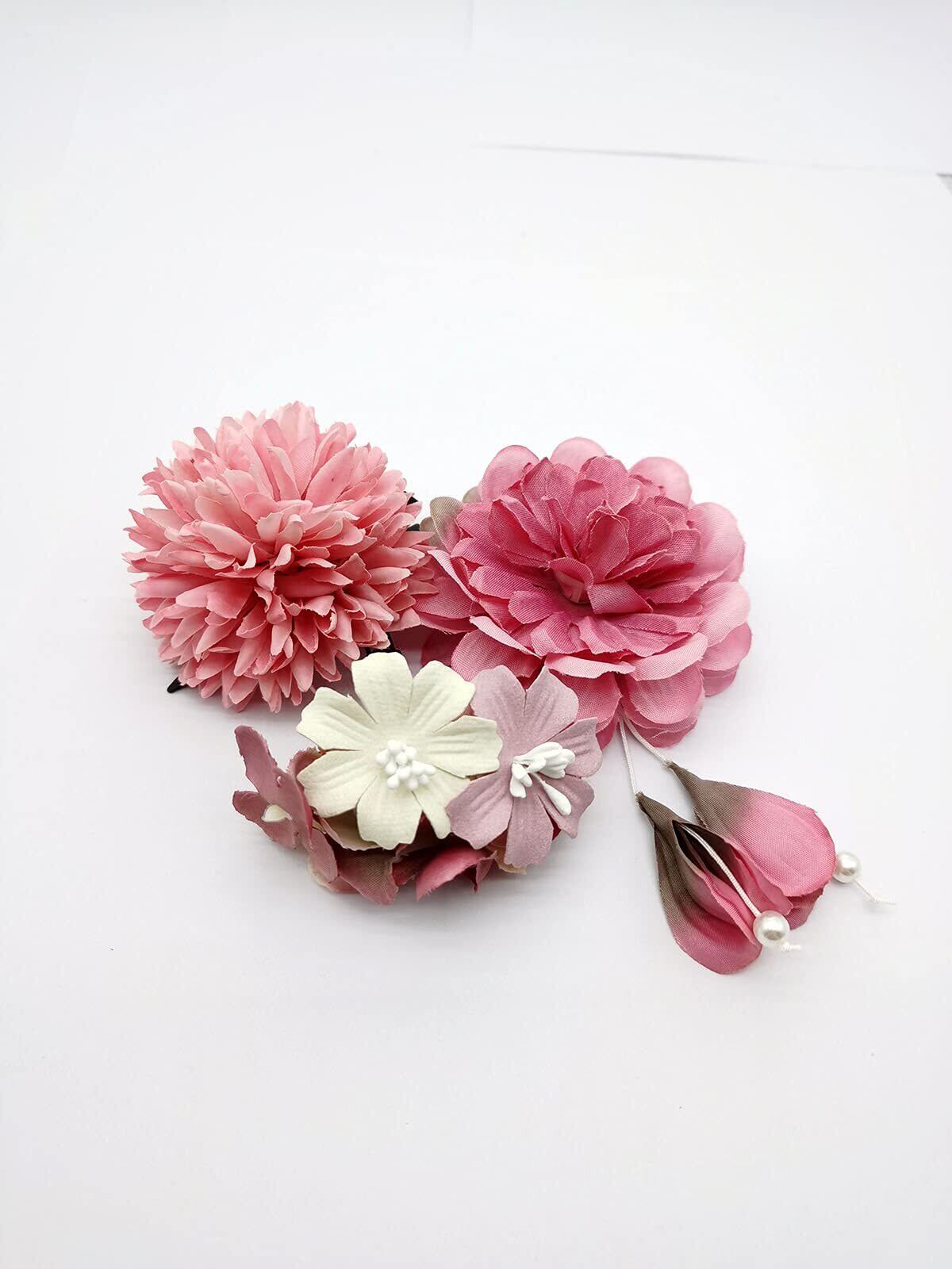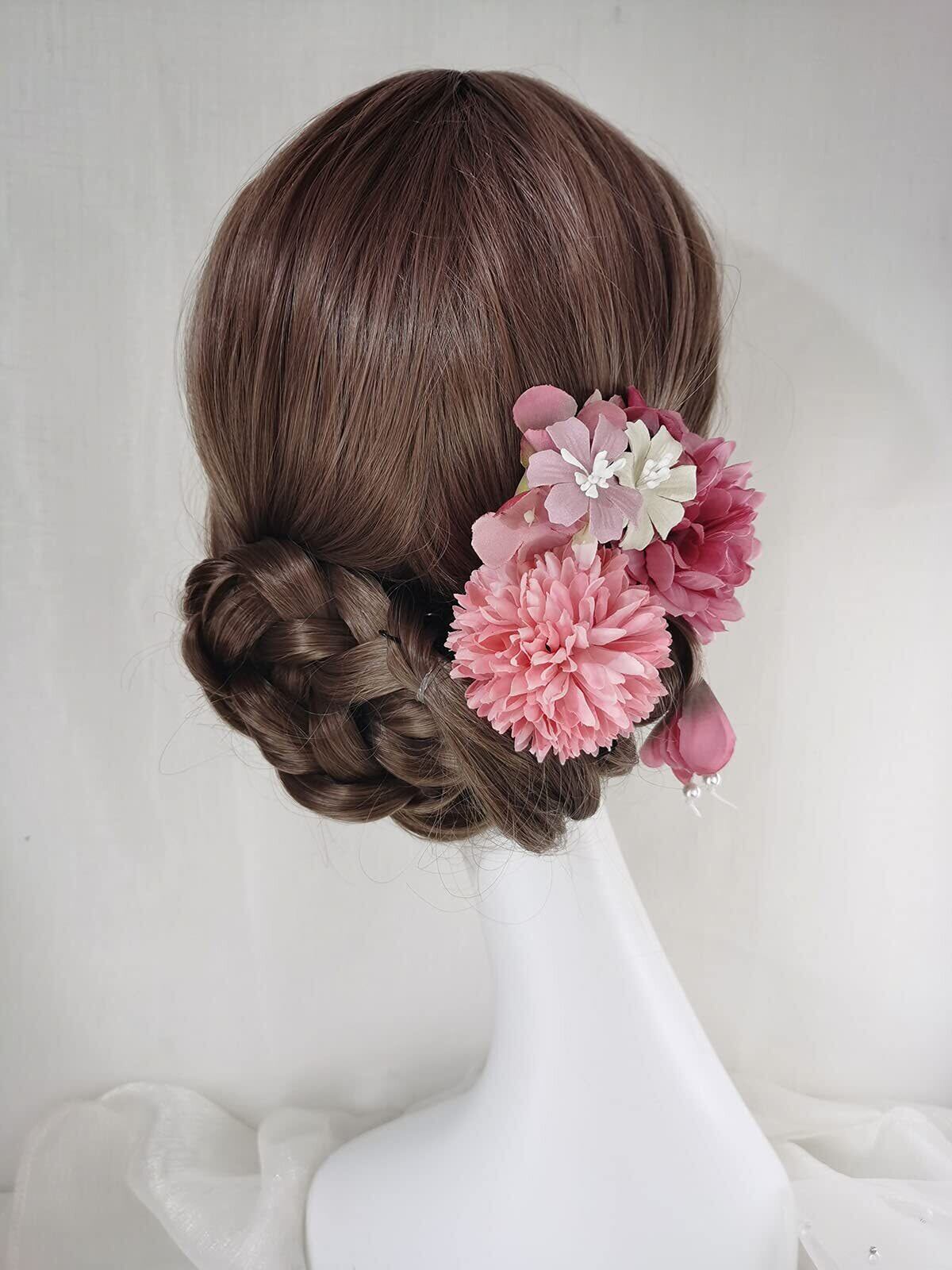 [QianYang] 髪飾り 花飾り成人式 髪飾り 和装 造花 ヘアアクセサリー 浴衣 袴 着物 振袖 成人式 結婚式 入学式 卒業式 七五三 3点セット 4カラー