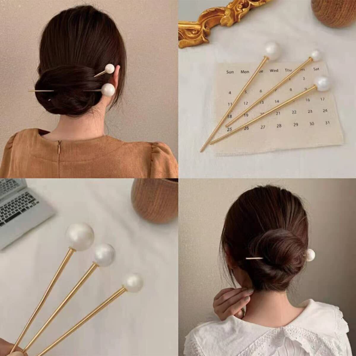 パールデザインのかんざし3本セット、シンプルがおしゃれです。