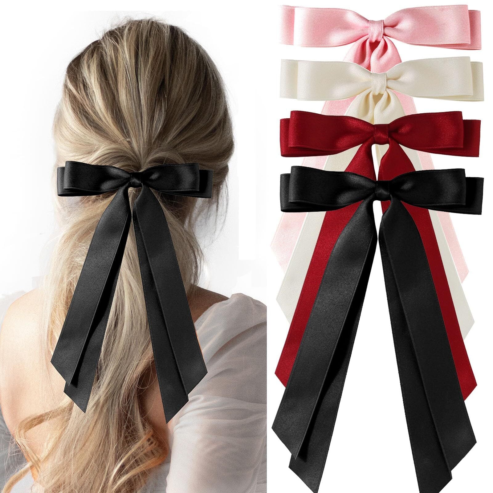 【シンプルで使いやすい】:クラシックな弓要素のデザインは非常に繊細でエレガントです。 髪に長いテールリボンを付けると、よりエレガントで魅力的に見えます。 さまざまなシーンや日常使いに適しています。