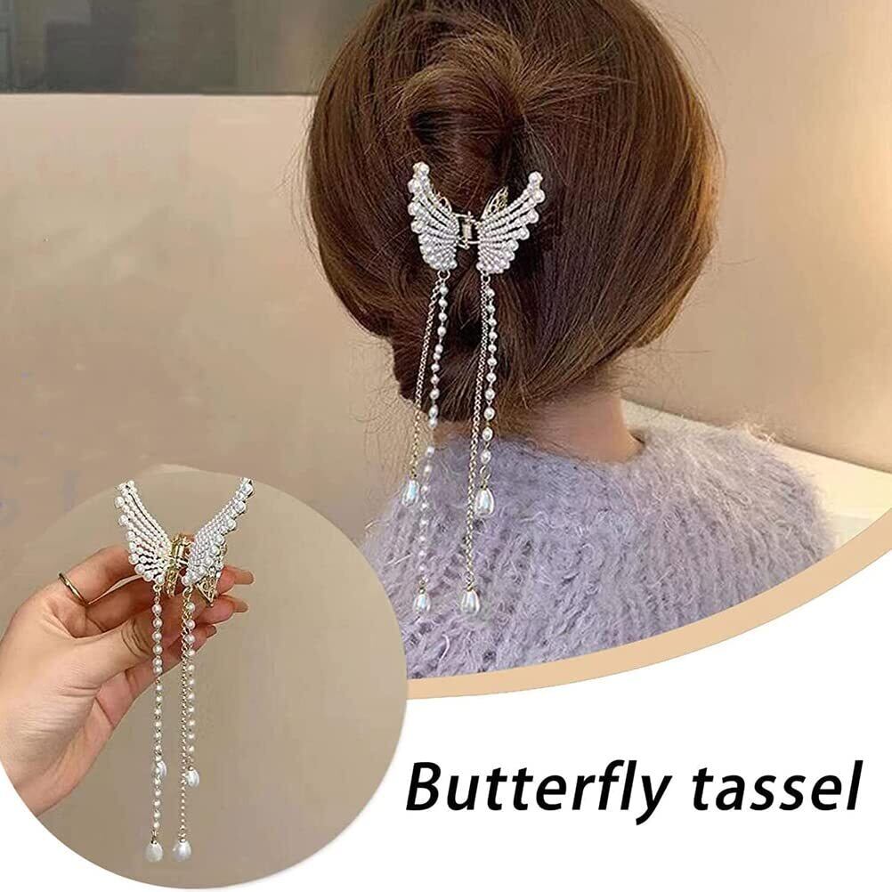 J-ouuo ヘアクリップ 蝶のヘアピン パールタッセル 光沢のある 天使の翼 髪クリップ 頭飾り 髪飾り 髪留め ヘッドドレス ヘアアクセサリー 発表会 結婚式