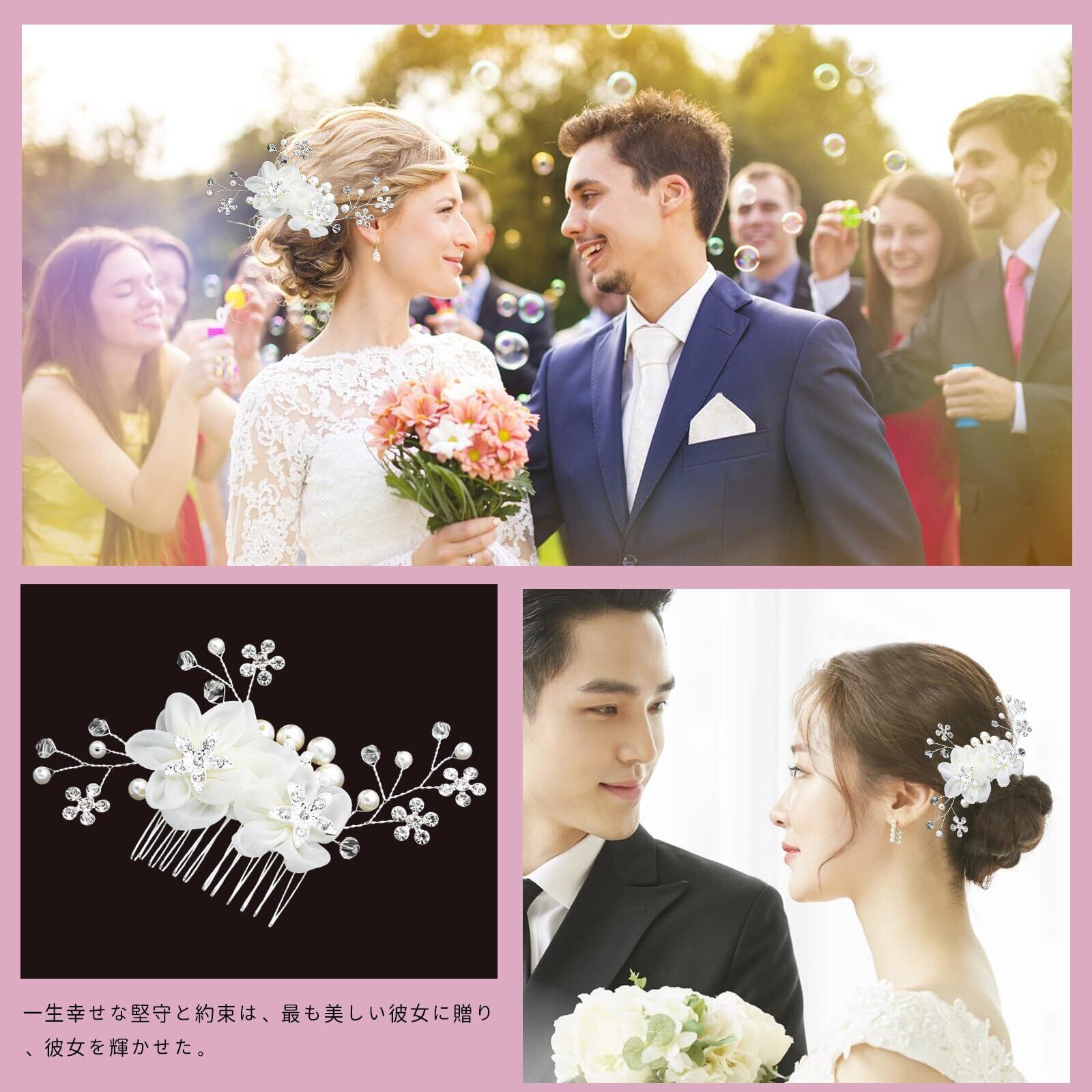 【高品質の素材】花嫁 ヘッドドレスは高品質のクリスタル、真珠、雪糸絹花、合金材質を用いて製作され。手作りで丁寧に作り、壊れにくい丈夫な作り、高級感、光沢感がある、軽量、着心地も抜群です。このヘアピンの合金ワイヤーを全体の形を少し変えて、髪型に合わせて個性的に見せることができます。