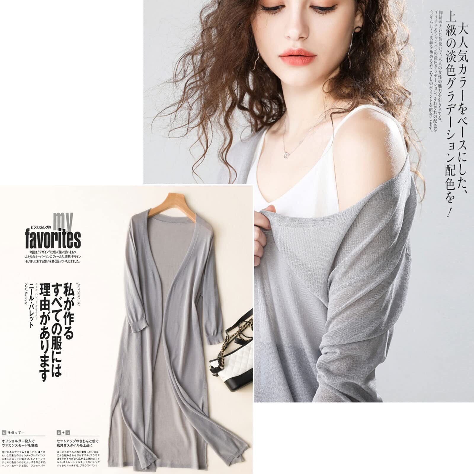[KumiModa] カーディガン ロング丈 トップス レディース 薄手 羽織り ニット 冷房対策 uvカット カーディガン カジュアル 無地 春 夏 長袖 柔らかい 透け感