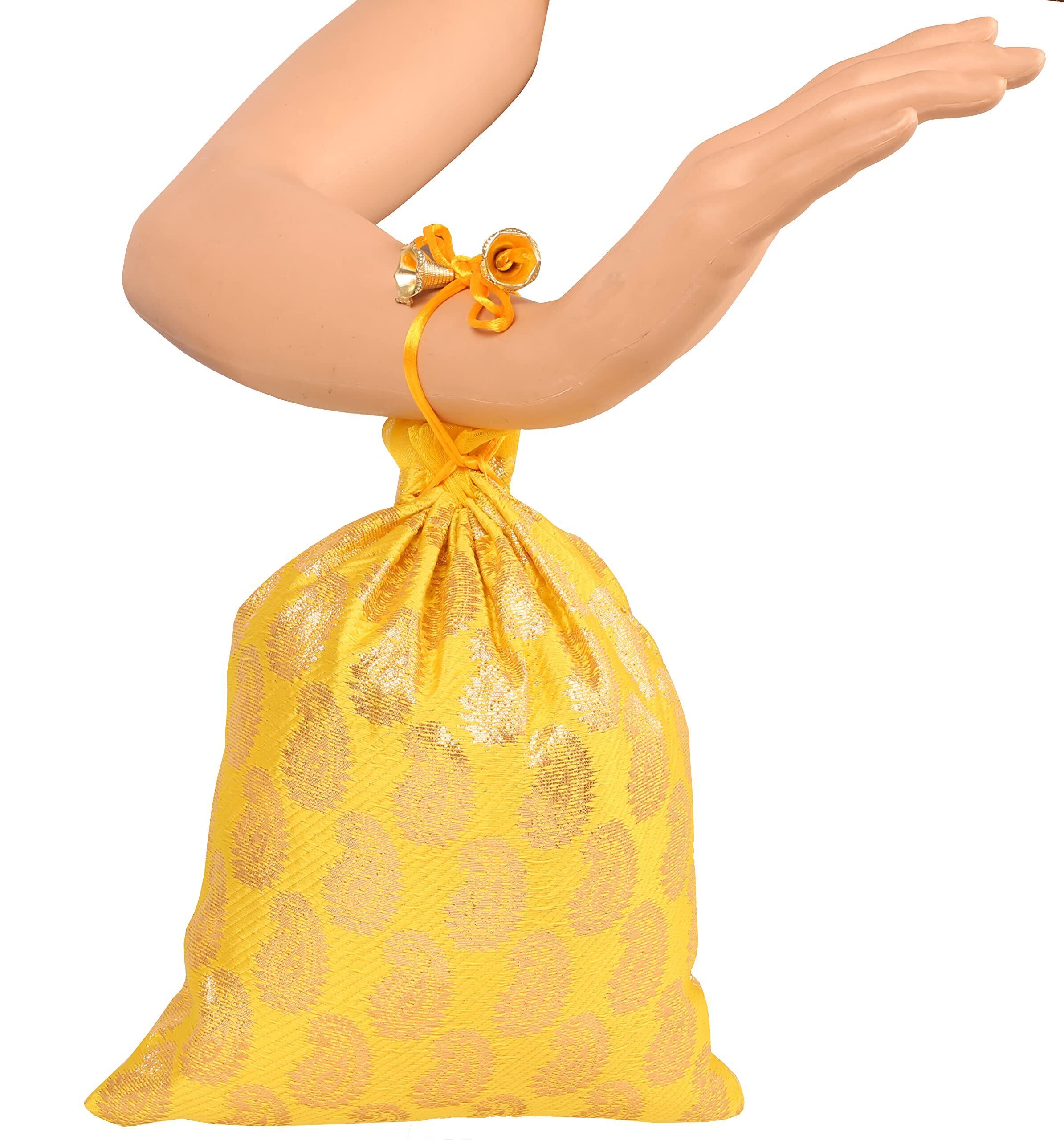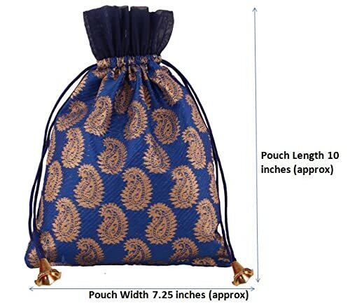 Touchstoneゴージャスなインドの伝統的なペイズリーBrocade Drawsring大きいバッグの袋は、結婚式のギフトジュエリーのための包装の包装ブライダルパーティーのお金の盛り合わせ色の盛り合わせの色のセットを盛り上げました。幅7.25インチ。