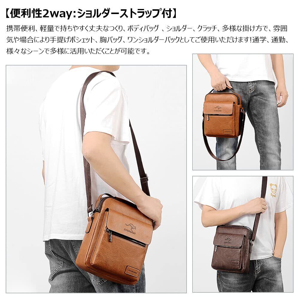 【新春セール】[Whatna] 革ショルダーバッグ メンズ 3way斜め掛け胸バッグ 手提げバッグ セカンドバッグ 手持げバッグ 厚 手 レザー Ipad 9.7収納可 横型 カジュアル フォーマル ビジネス 通学 通勤 結婚式 肩掛けバッグ 自転車かばん 0912