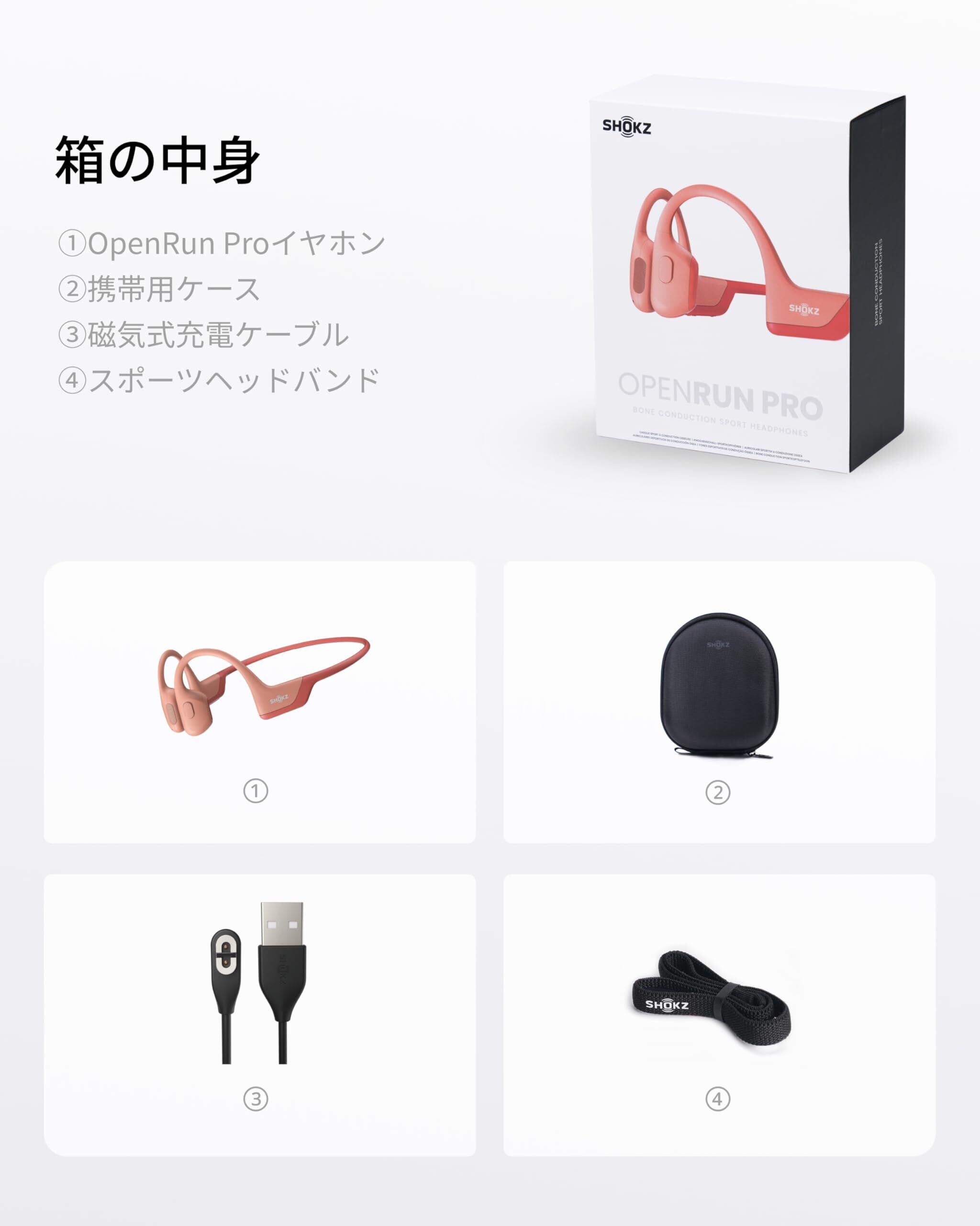 Shokz (ショックス) OpenRun Pro 骨伝導イヤホン ワイヤレス Bluetooth5.1 オープンイヤーヘッドホン 耳を塞がない 自動ペアリングヘッドフォン 技適認証済み マイク付きランニング・スポーツイヤフォン 防水防滴 急速充電 10時間再生 ピンク