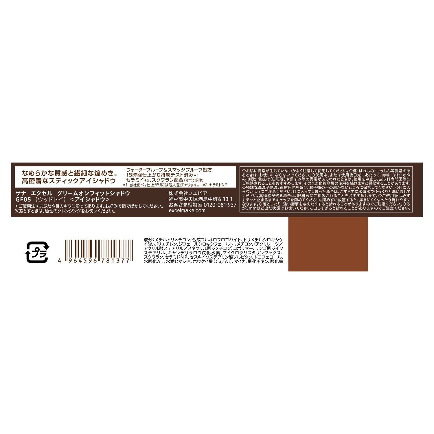 excel(エクセル)グリームオンフィットシャドウGF05(ウッドトイ)アイシャドウ スティックシャドウ ペンシル ウォータープルーフ
