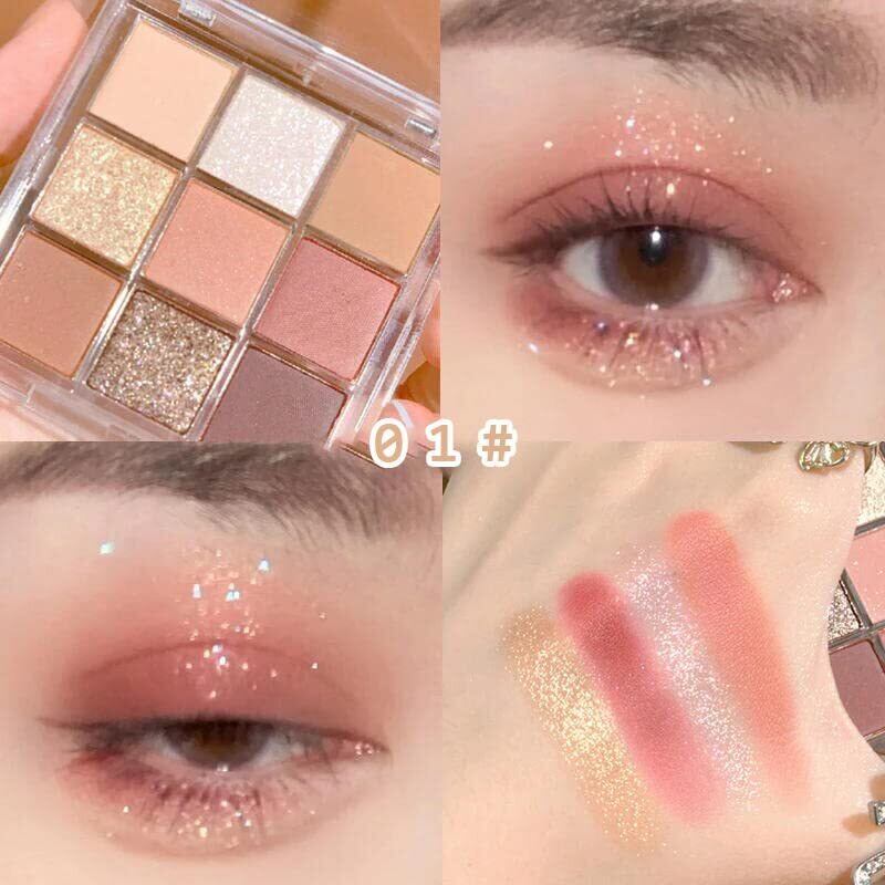 SUIKONE アイシャドウパレット 9色 アイシャドウ アイシャドーコスメ メイクパレット アイメイク ラメ 高発色 高密着 コンパクト (01#コーヒームース)