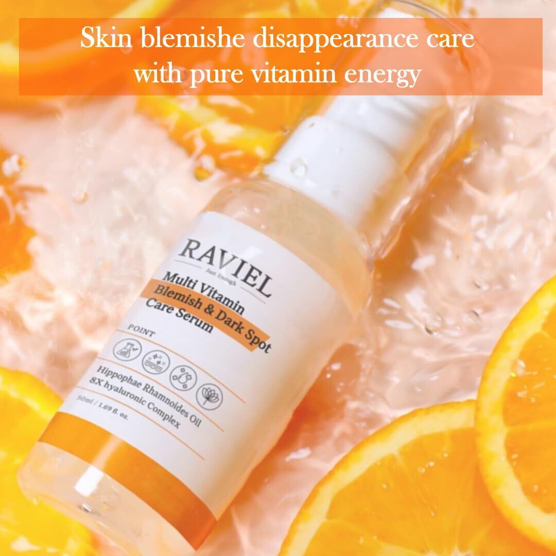 【RAVIEL】 ラビエル マルチ ビタミン ダーク スポット &ブレミッシュ ケア セラム 50ml シミ 鎮静 ケア 3日 シワ 高濃縮 そばかす トーンアップ 全ての肌タイプに適した、高保湿のヒアルロン酸、明るい肌、ビタミンツリーオイル、しっとり肌、トータルケアアンプルセラム、栄養成分、韓国化粧品 韓国コスメ RAVIEL Multi Vitamin Dark Spot & Blemish Care Serum 50ml