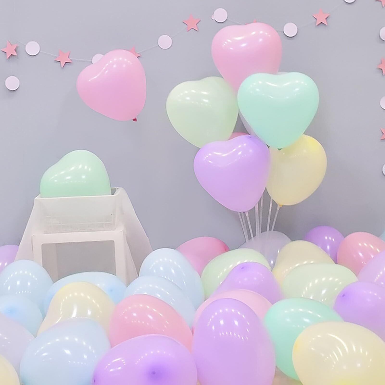 風船 バルーン ハート型 100個入れ バレンタイン 風船 ハート型 混合色 マカロンバルーン パーティー バルーン 赤 ピンク 誕生日会 ハート型 風船 告白 求婚 結婚式 記念日 飾り付け 装飾 ハートバルーン 6つ選択 カラフル (マカロンハート型「ミックスカラー」)