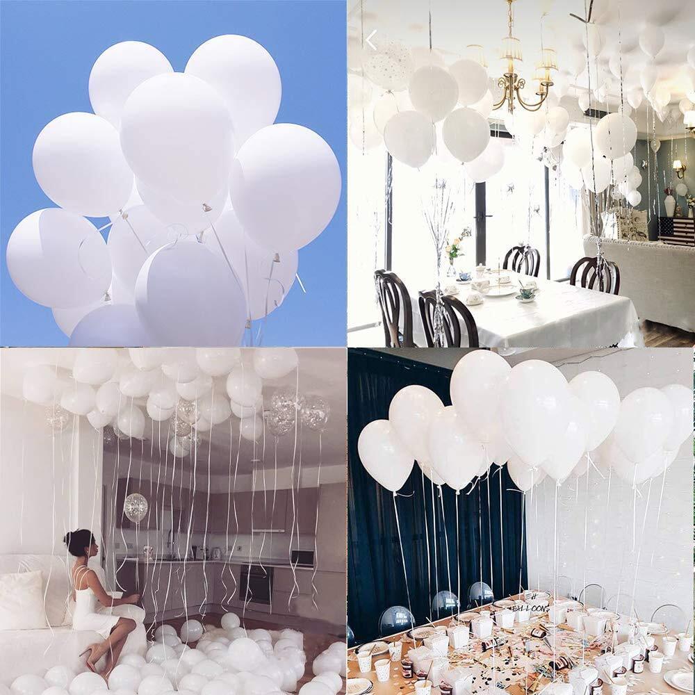 【100個入り(取り扱いの注意:対象年齢6+以上)】ホワイト風船100個入り、極厚(1個あたり2.2g)、膨れる状態で10インチ(約25cm)。たくさん使うのでとってもボリューム感のある飾り付けにすることができます。