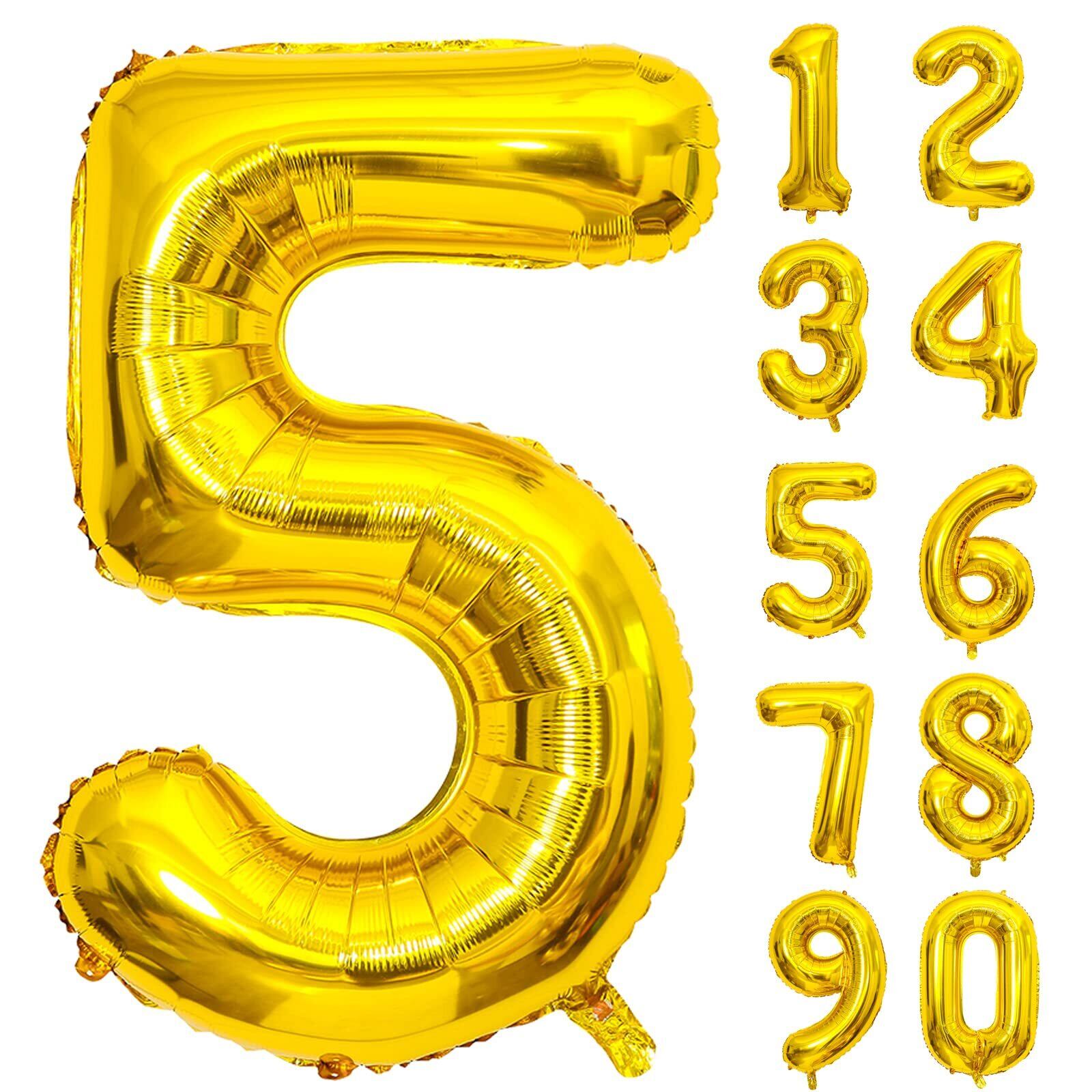 Lausatek バルーン アルミ風船 ゴールド 数字5 ナンバー 40インチ 大きい 誕生日 ハッピーバースデー 飾り付け ウェディング 記念日 パーティー 約90cm (数字5)