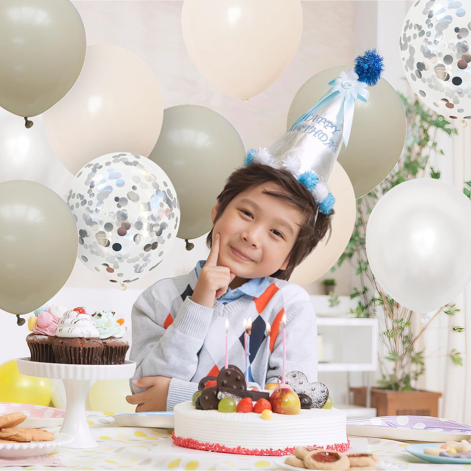 【新着商品】Lausatek バルーン 風船 40個 きらきら紙吹雪風船 飾り 装飾 誕生日 バースデー パーティー 結婚式 サプライ ズ お祝い イベント くすみホワイト