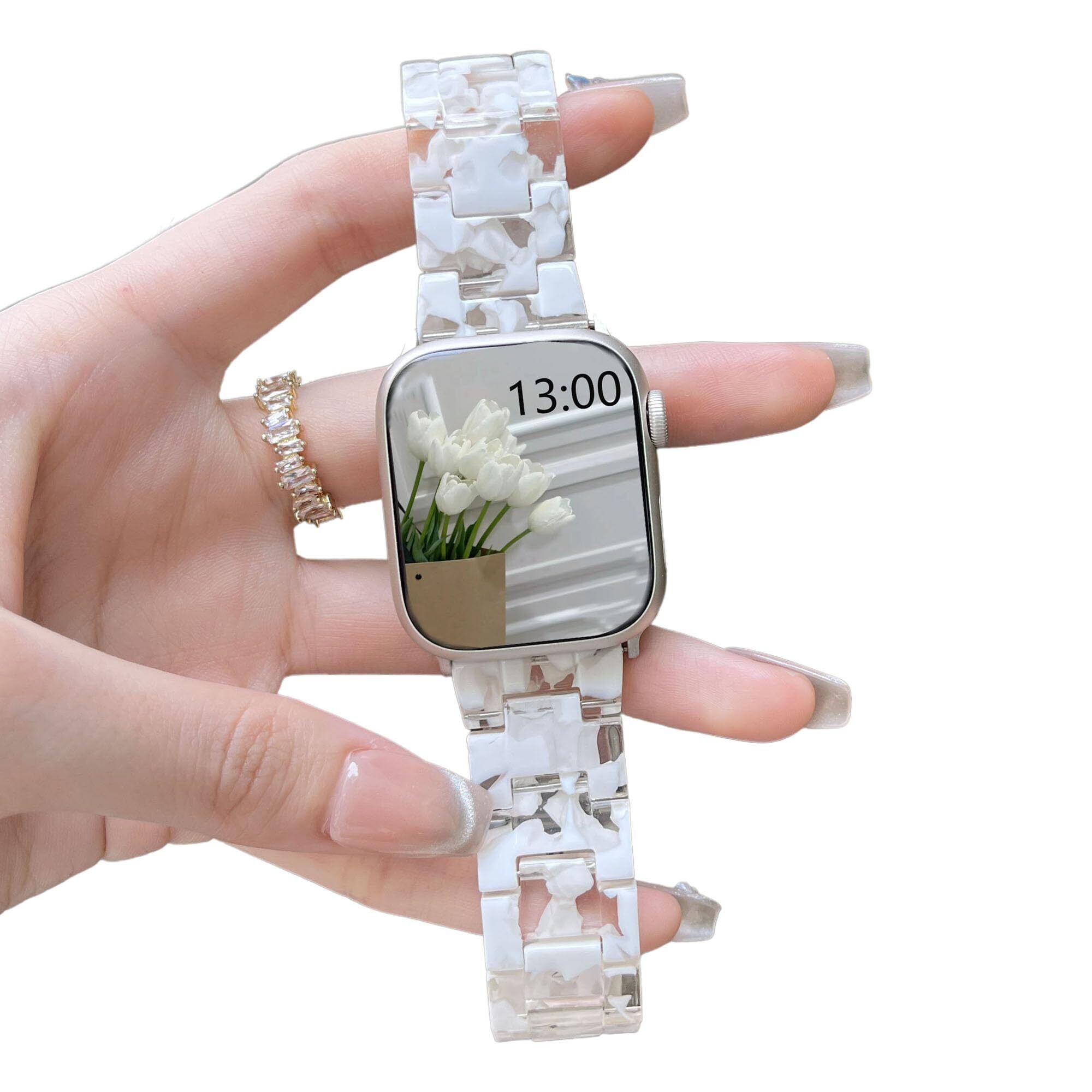【高品質な樹脂】:このあっぷるうおっちバンドは環境にやさしい樹脂です、軽量と耐衝撃性が高く、肌に優しいと,汗ばむことなくひんやり爽やかで、ナイロンやシリコン素材のムレ感から解放できます。