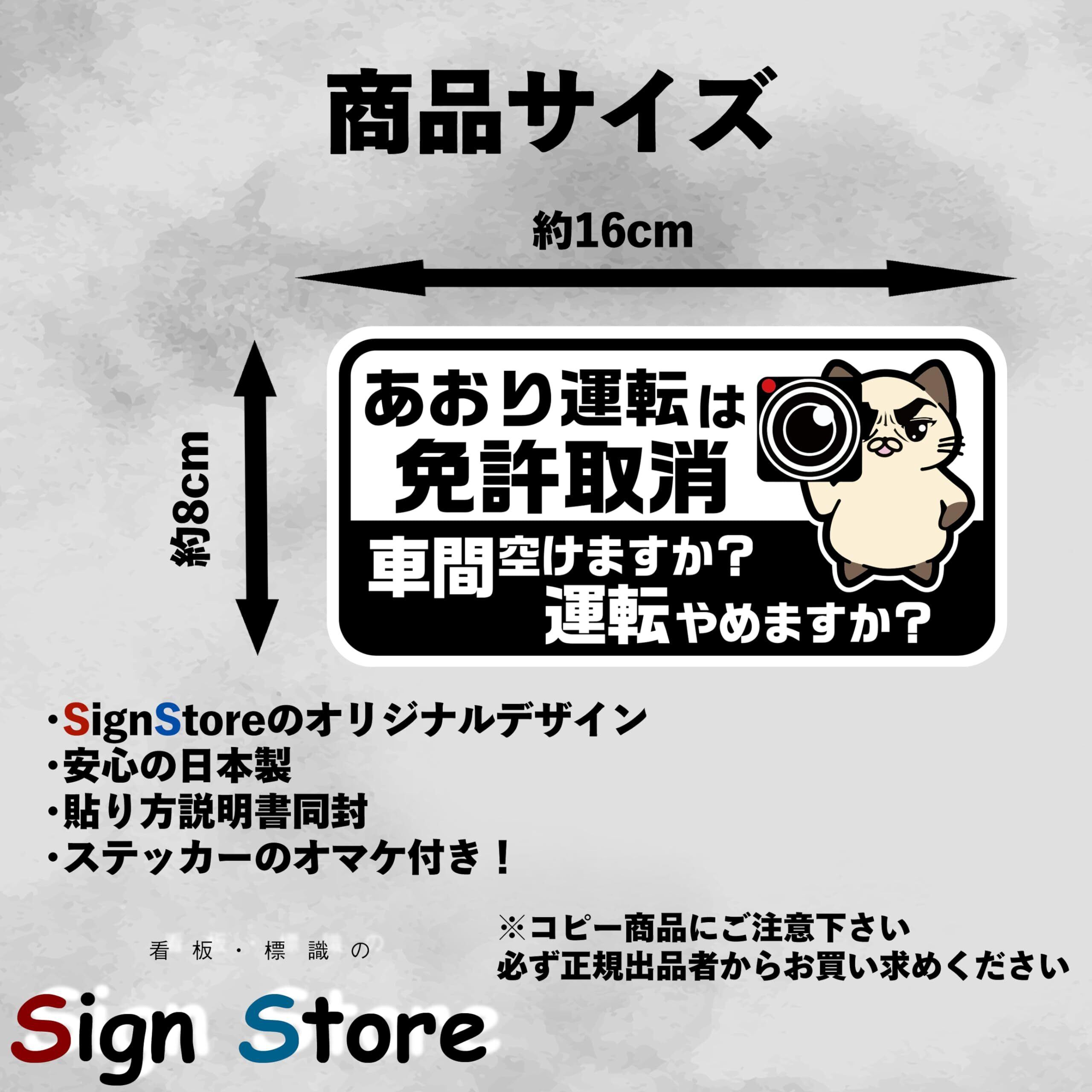 SignStore あおり運転は免許取消 煽り運転防止ステッカー 約8cm×16cm 緑 ビニール 日本製 car_character_14_A(免許取消)