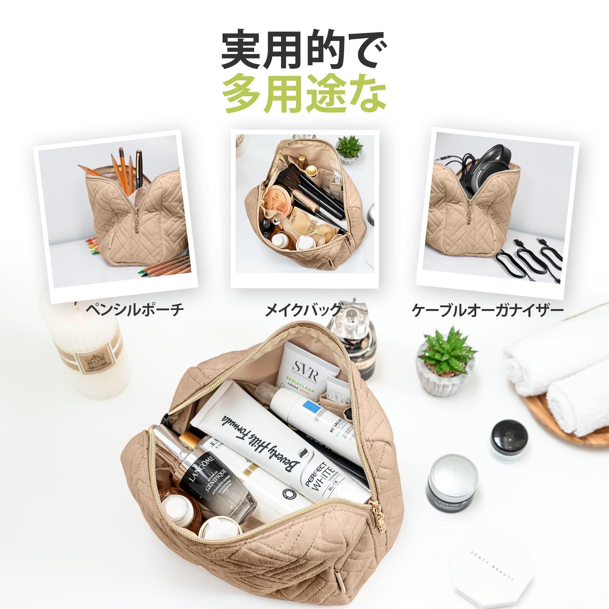 メイクアップオーガナイザーバッグは、整理しやすいための複数の仕切りを備えており、防水かつ洗濯可能です。 丈夫で、大きなバッグに収まり、全ての年齢層の女性や子供にお使いいただけます。