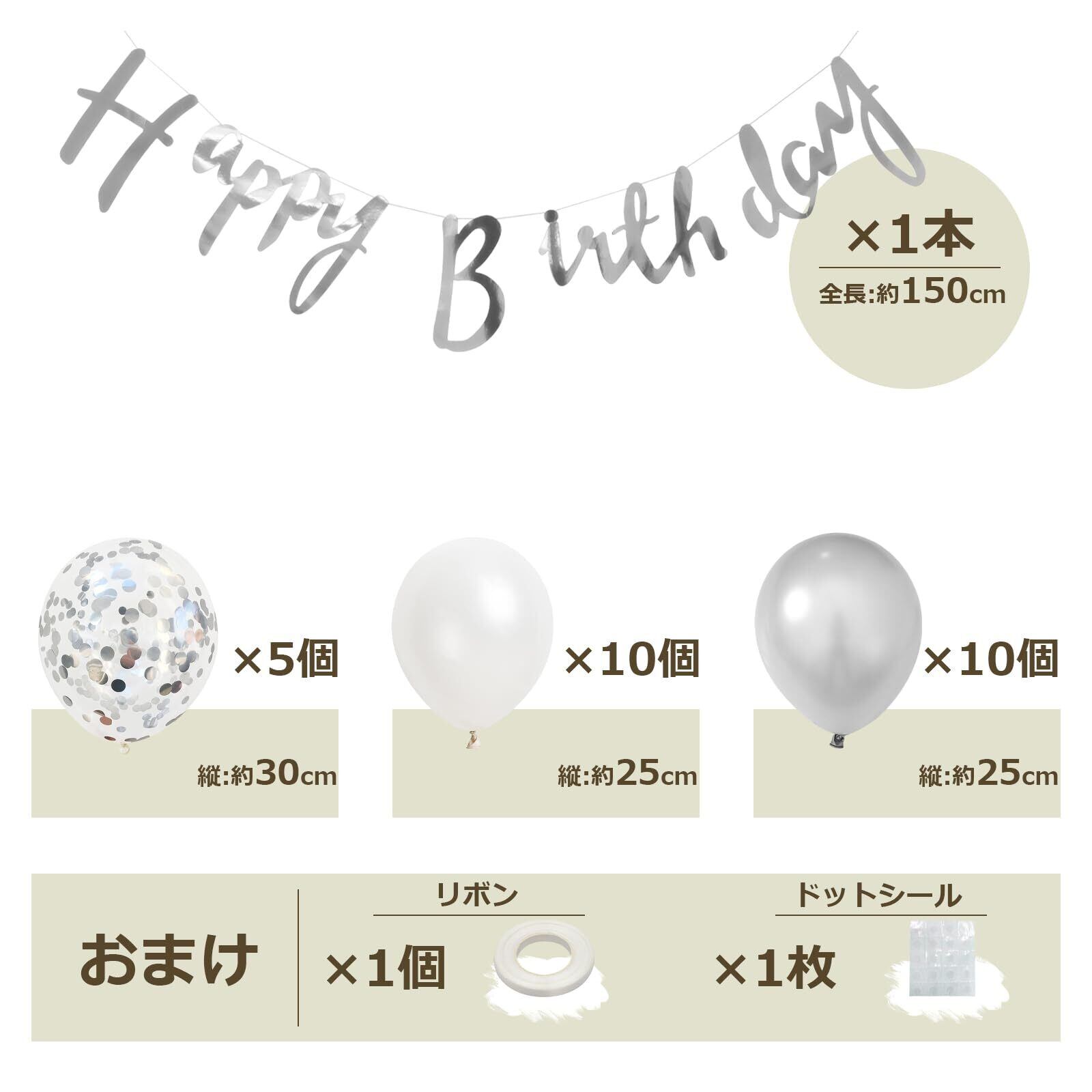 〔豪華なセット内容〕「24」数字バルーン×各1個、フラッグガーランド×1本、HAPPY BIRTHDAYガーランド×1本、紙吹雪入りバルーン×5個、ホワイトバルーン×10個、シルバーバルーン×10個、おまけ:リボン×1個、ドットシール×1枚。※商品の取り扱いは6才以上のお子様にお勧めします。ガーランドはお客様自身で糸通しをお願い致します。バルーン類は全て空気の入ってない状態でのお届けです。お届け後ご自身で膨らませてご使用下さい。