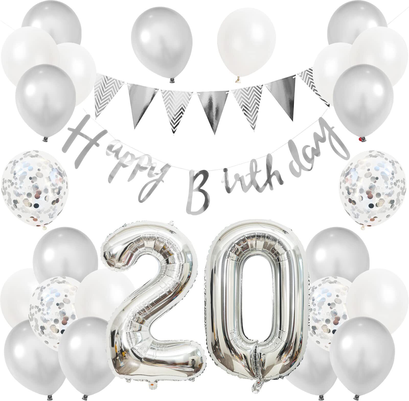 誕生日 バルーン 風船セット 飾り付け 20歳 happy birthday ガーランド バースデー 飾り ハッピーバースデー 大きい数字 紙吹雪風船 パーティー プレゼント サプライズ 大人 男の子 女の子 銀