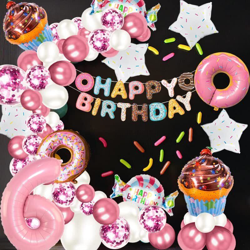 Senteria 誕生日 バルーン 数字 風船 ピンク ドーナツ 飾り付け セット ハッピーバースデー 風船 happy birthday バルーン パーティー 飾り かわいい 豪華で大容量 子供 少女 お祝い (6歳)