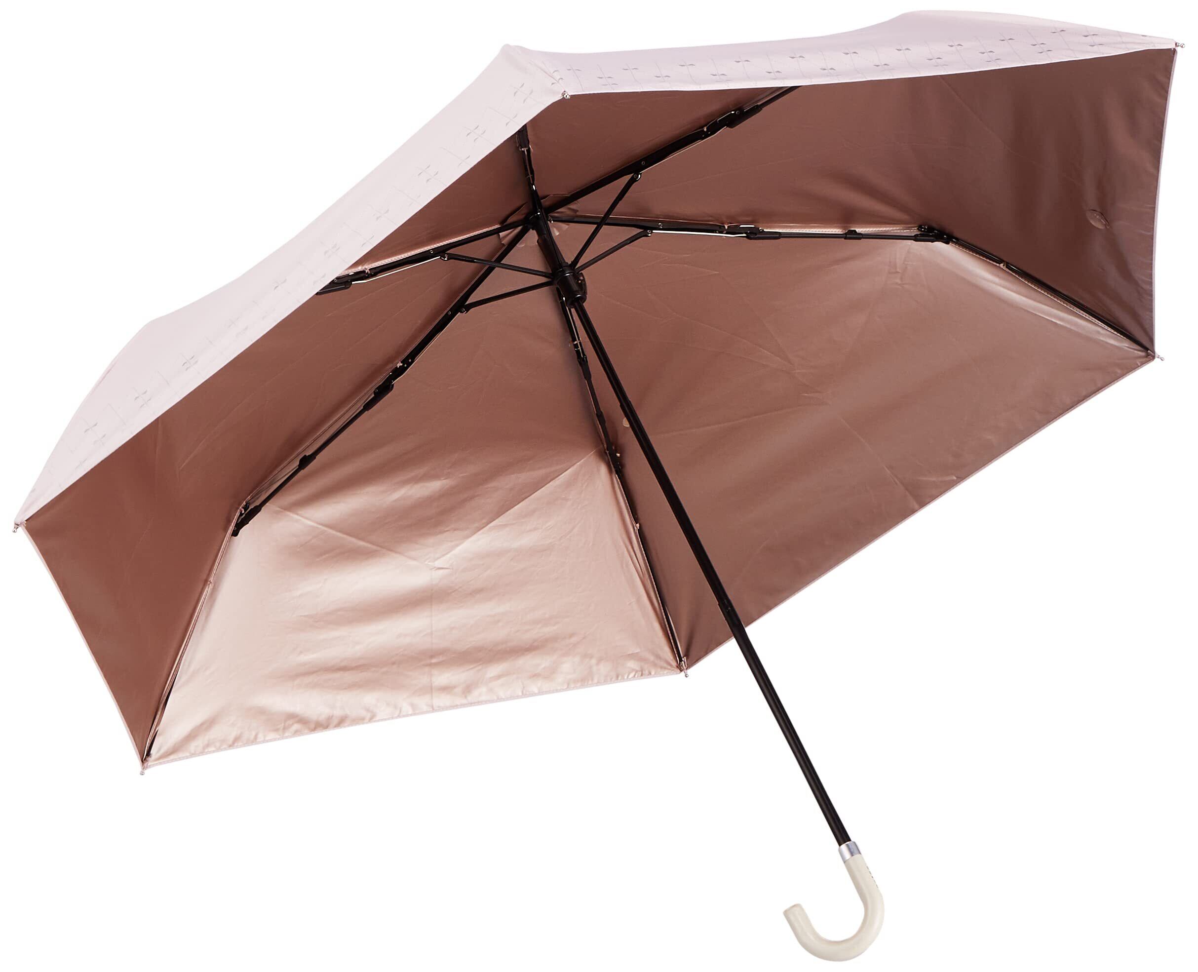 親骨の長さ:50㎝ 全長:約28㎝ 広げたサイズ:約91㎝ 重さ:約250g スリムで軽量な折りたたみ傘。内側に施されたパールコーティングでキラキラ感を演出。コスメ感のある日傘です。
