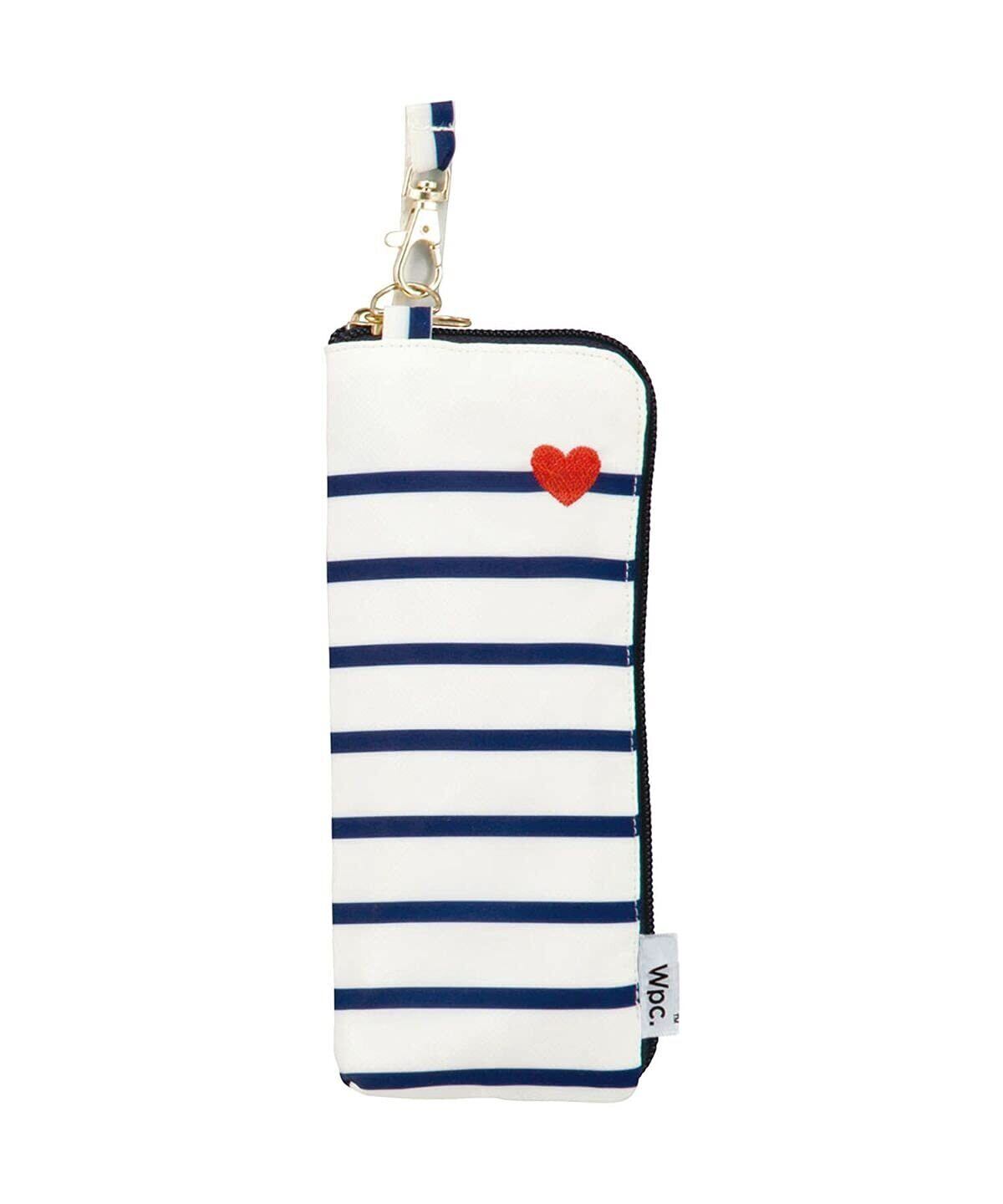 Wpc. 雨傘 ハート刺繍ボーダーmini オフ 折りたたみ傘 レディース 晴雨兼用 フック付き 収納ケース 大きく開く 持ち運びに便利 飽きの来ないデザイン 通勤 通学 おしゃれ 可愛い 女性 302-126