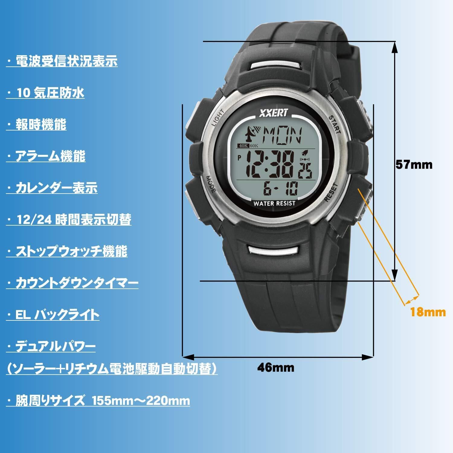 [NOA精密] 腕時計 デジタル イグザート 電波 ソーラー 防水 ウレタンベルト XXW-503 S メンズ ブラック