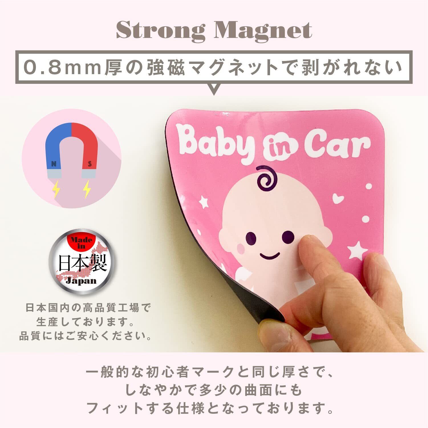 車に貼るマグネットタイプのベイビーインカーステッカー。マグネットタイプなので、貼りかえ簡単。お出かけシーンや気分に合わせてお使いください。