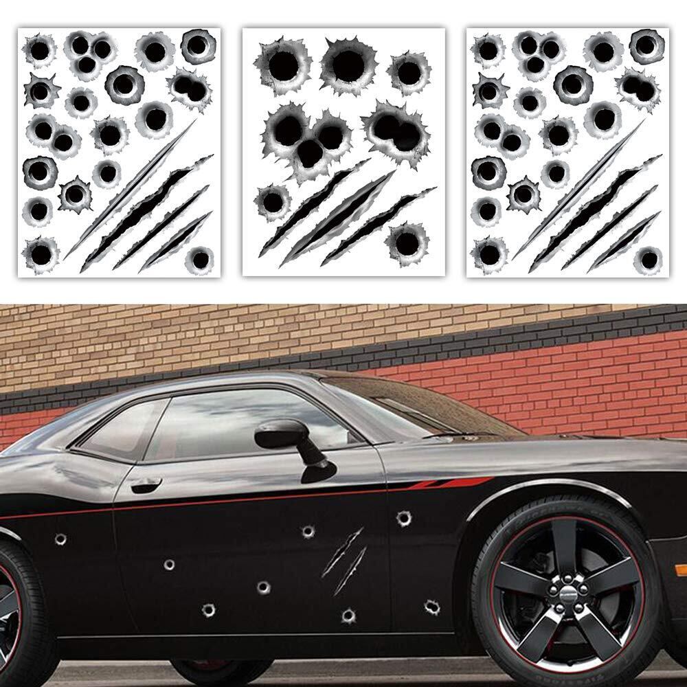 【特価商品】1797 車用 ステッカー 3Dステッカー 弾丸 弾痕 傷跡 爪痕 おもしろ いたずら かっこいい カーステッカー 防水ステッカー 自動車 バイク スーツケース PC 汎用 デカール シール 車ドア 装飾 約23×29CM 3枚セット