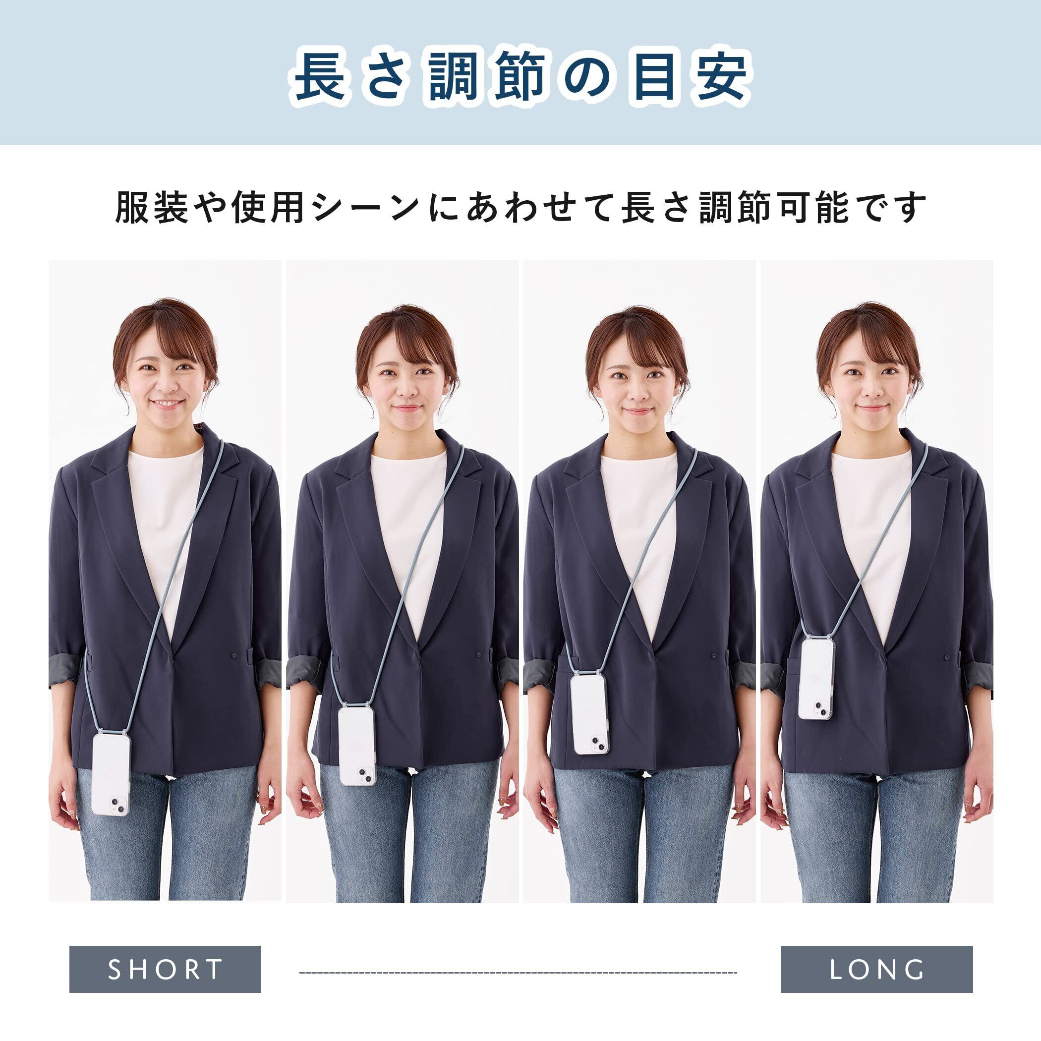 ショルダーストラップ長さ調整可 (最大全周165cm)/Qiワイヤレス充電可/装着時カメラ撮影可(※超広角カメラで撮影した際にケースの一部が写り込む可能性がございます)
