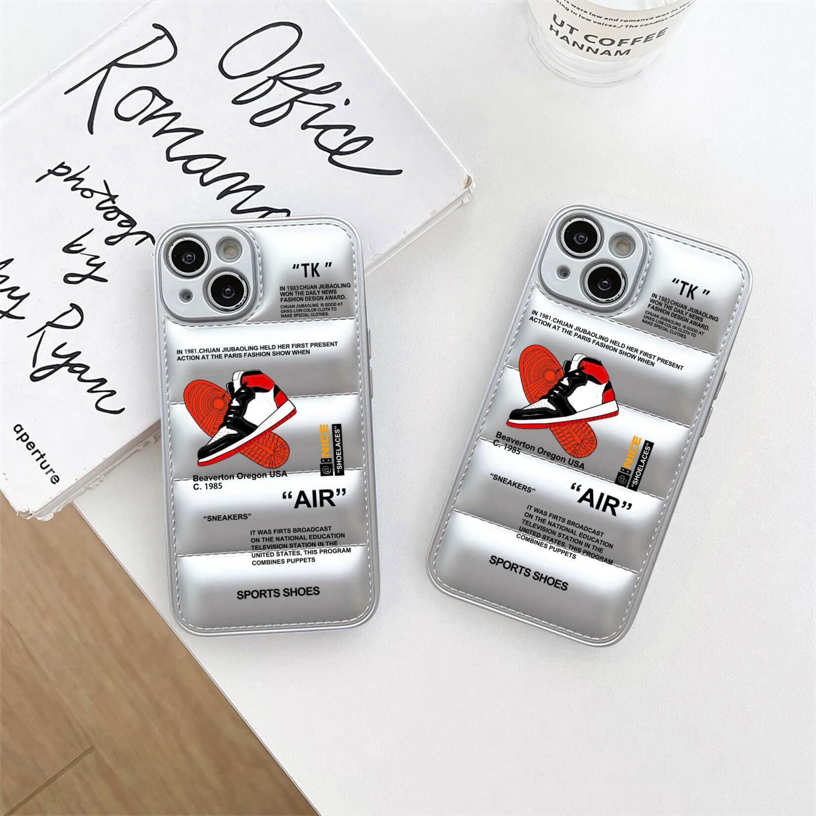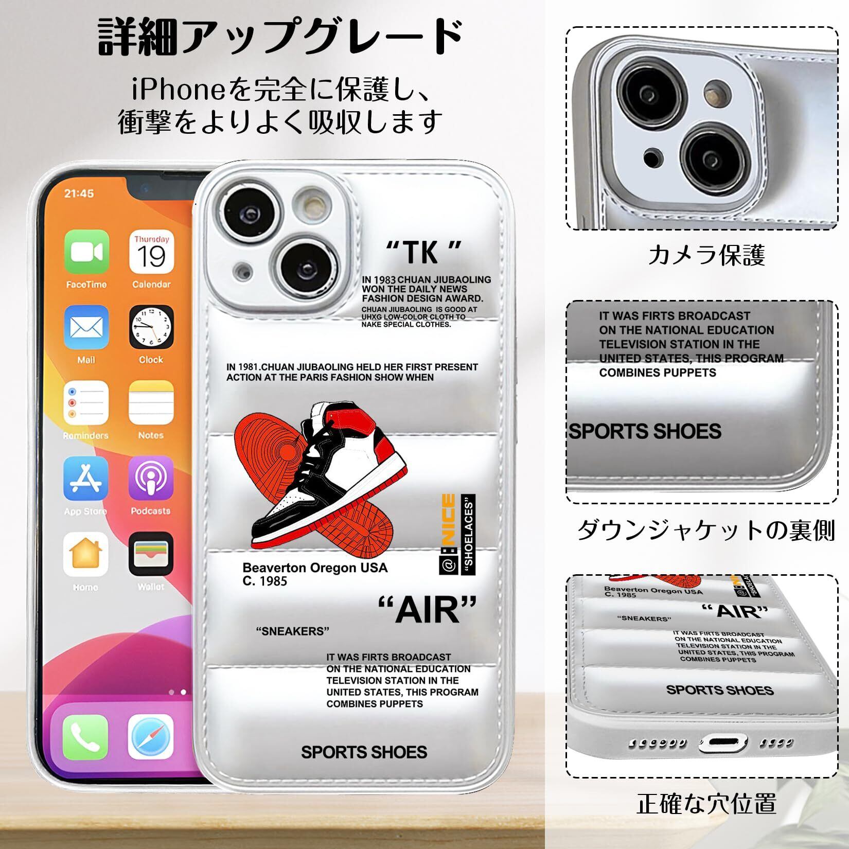 【数量限定】iPhone 15 plus 用 ケース (6.7インチ専用)ストラップ ネック ショルダー ストラップ付き iPhone15 plus 対応 カバー スニーカー ダウンジャケット デザイン ふかふか クッション レザー調 おしゃれ 韓国 シルバー ソフトケース(silver)