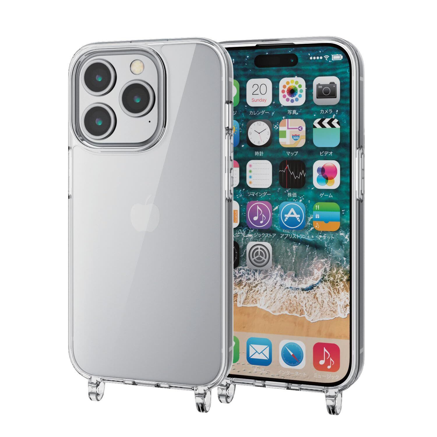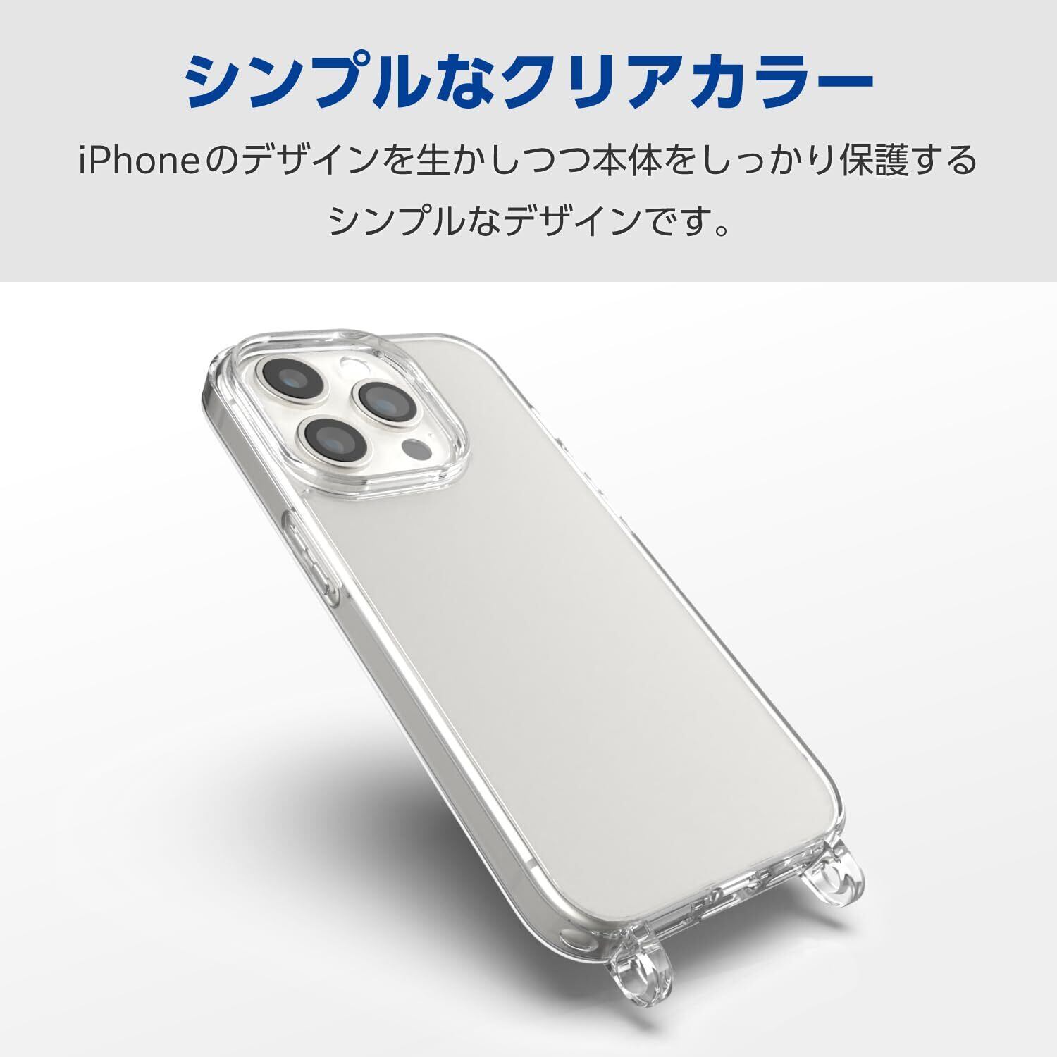 エレコム iPhone15 Pro ケース ショルダー ストラップホール付き 首掛け 肩掛け 耐衝撃 衝撃吸収 [ストラップは別売りです] クリア PM-A23CHVCKSHCR