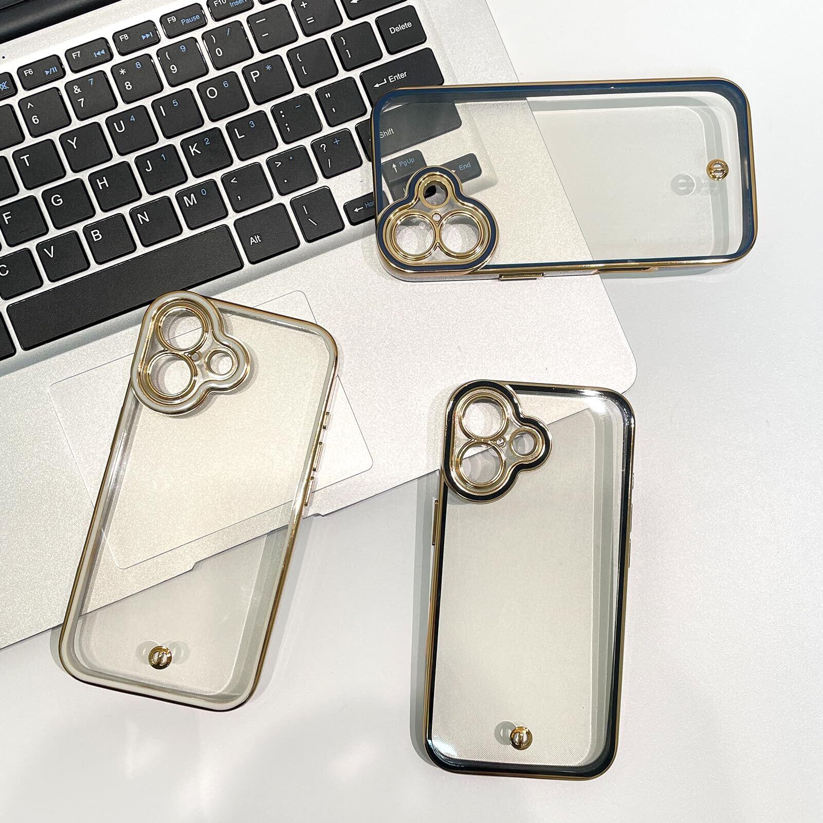 CityKoda iPhone 16 ケース 強化ガラス保護フィルム1枚付き 簡約 シンプル 金メッキ加工 カメラフィルム付き 透明 ソフト レンズ保護 クリア 軽い 柔軟 薄型 可愛い ファッション アイフォン16 専用ケース 6.1インチ ホワイト