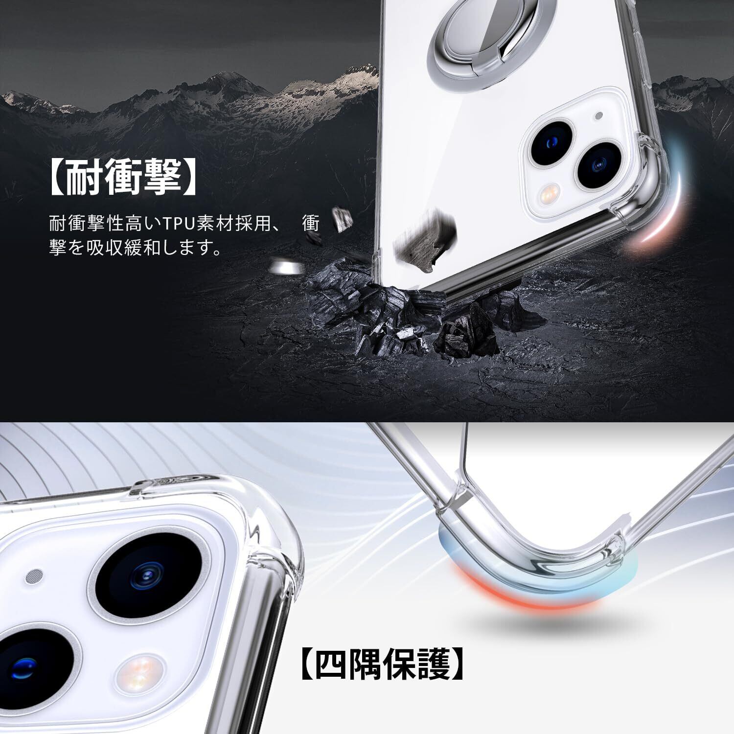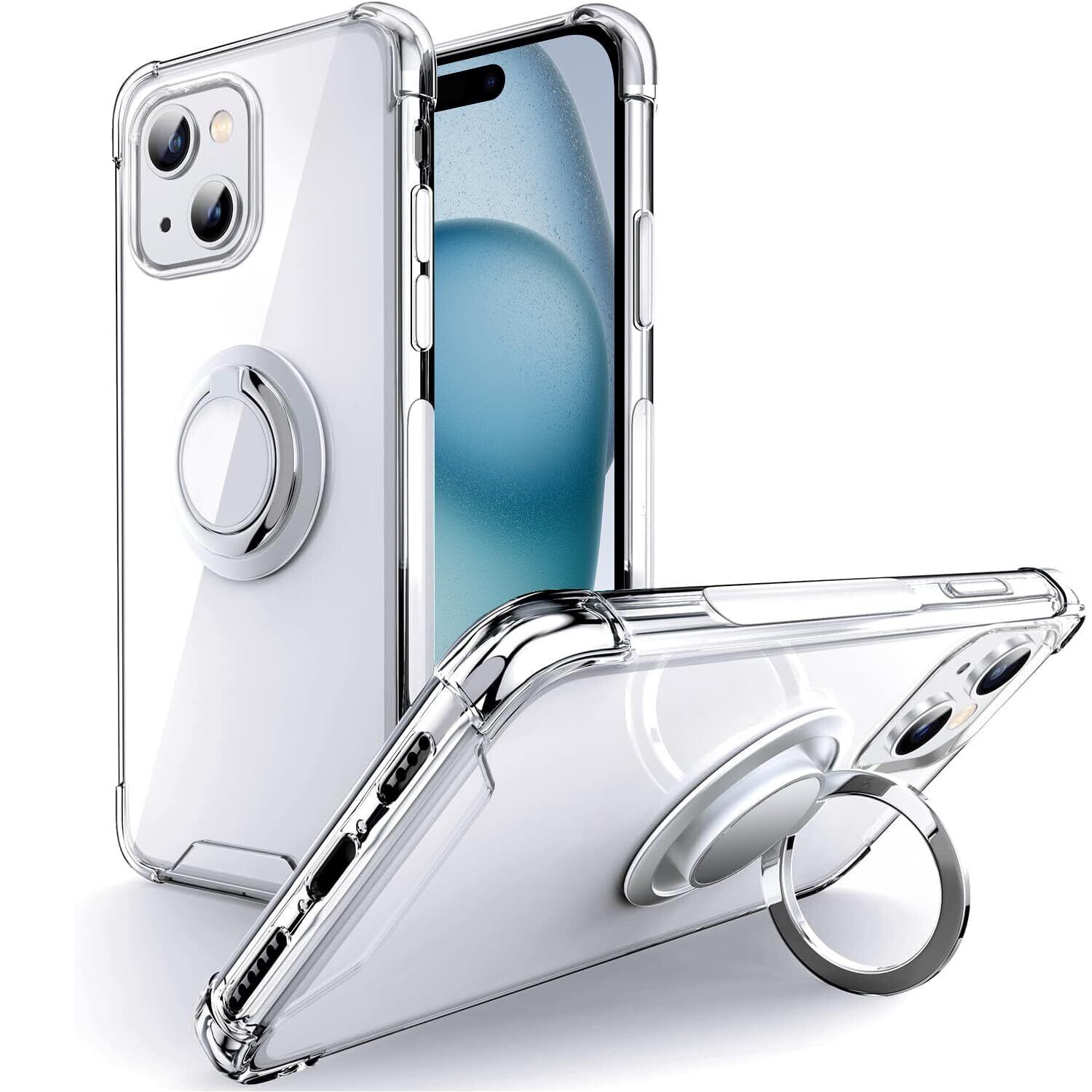 Rockaway iPhone 15 用 ケース リング付き 耐衝撃 耐久 すり傷防止 滑り止め スタンド機能 軽量 薄型 クリア TPU 透明 スマホケース アイフォン15 用カバー 6.1インチ - クリア