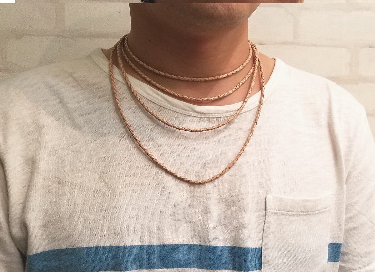 [dredline] lch【太さ3.0mm/引き輪タイプ】牛革 四つ編み レザーチョーカー 黒 茶 革紐 ネックレス レディース メンズ ペンダント用 ステンレス金具 アレルギー用 アレルギー対策