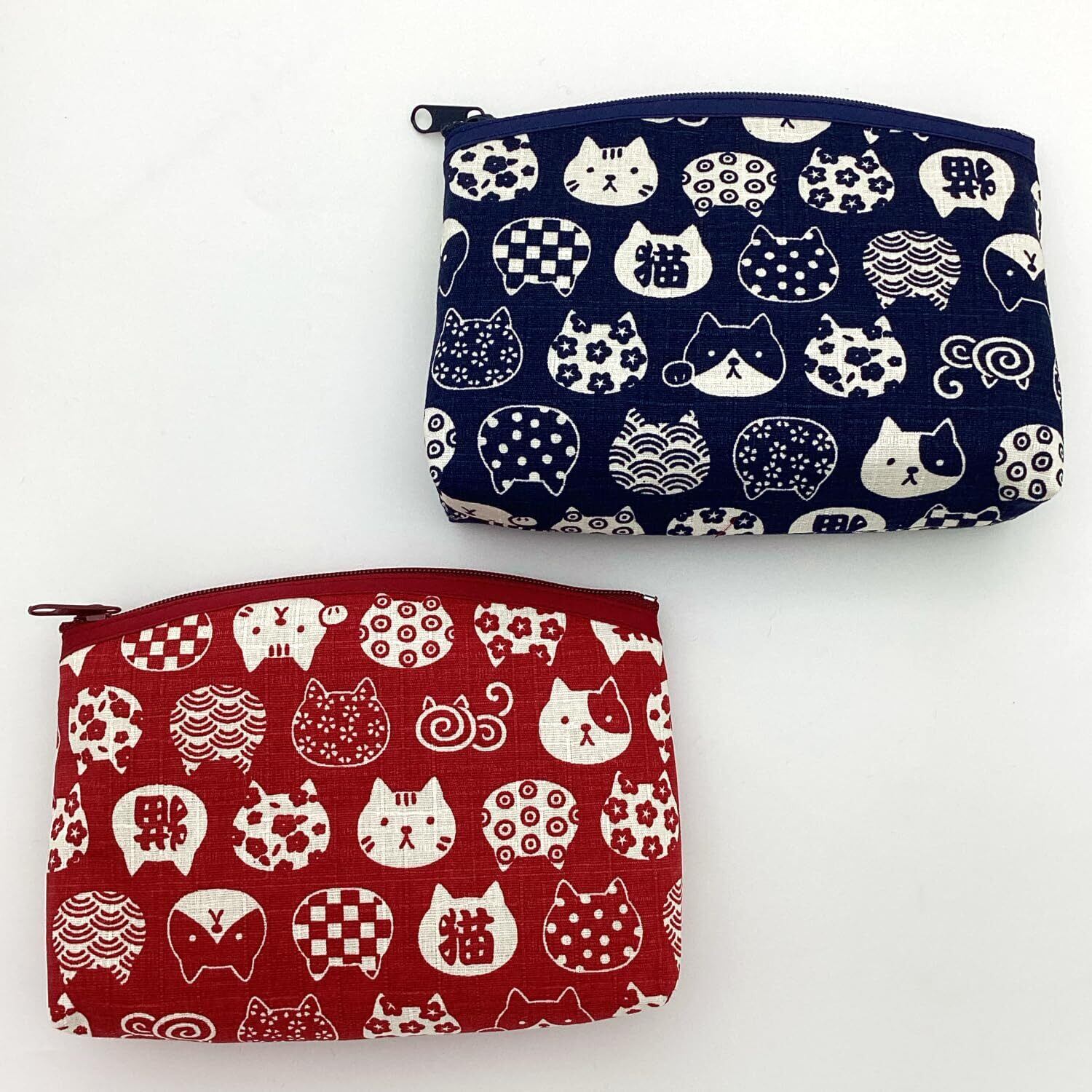 【数量限定】京佑 日本製 ポーチ レディース 約12×15.5cm 化粧 小物入れ 持ち運び 猫 ねこ 和柄 ブレスにゃんこもん 赤