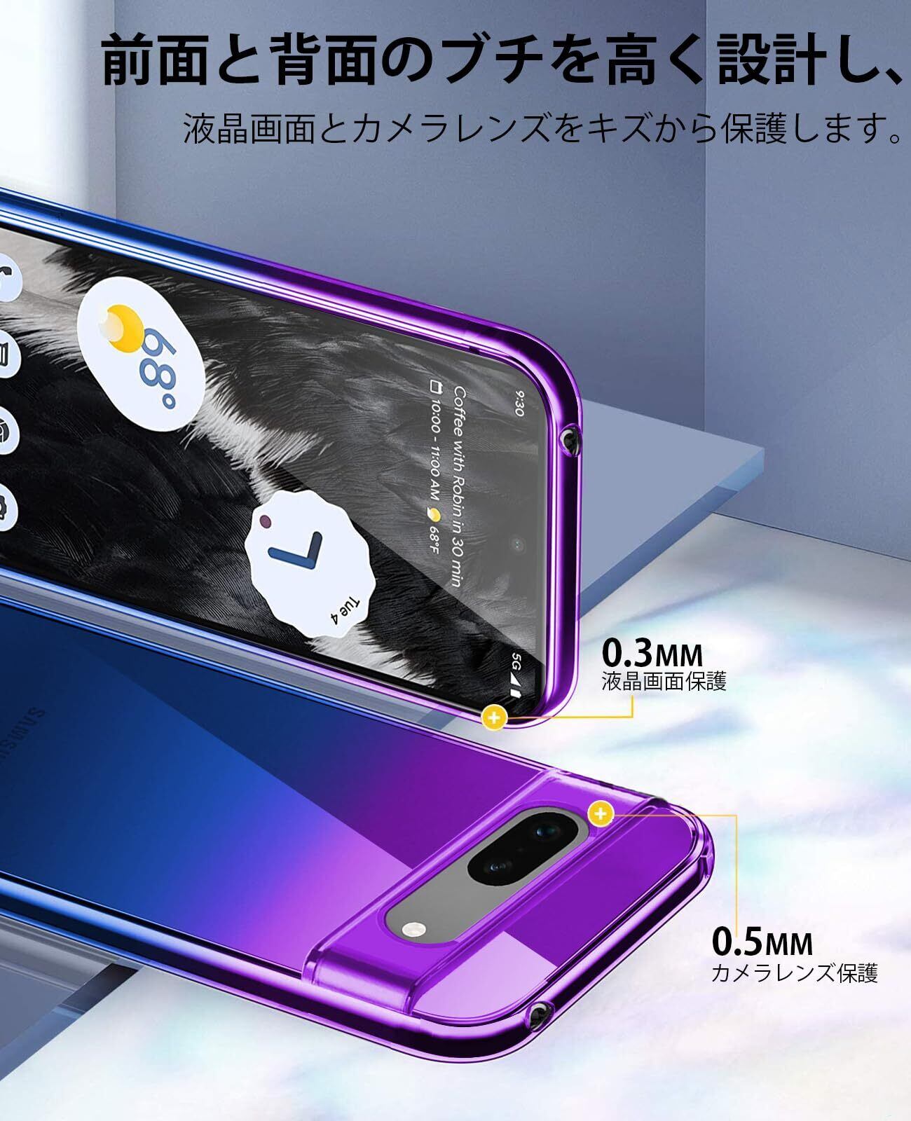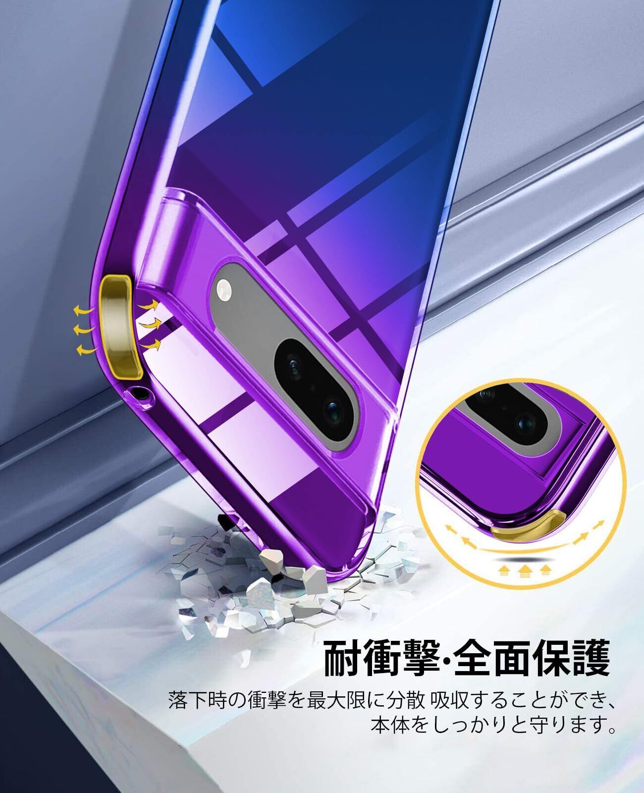 Google Pixel 8a ケース クリア 薄型 TPU 耐衝撃 ピクセル8a カバー グラデーション色 ケース 指紋防止 擦り傷防止 軽量 人気 携帯カバー パープルブルー