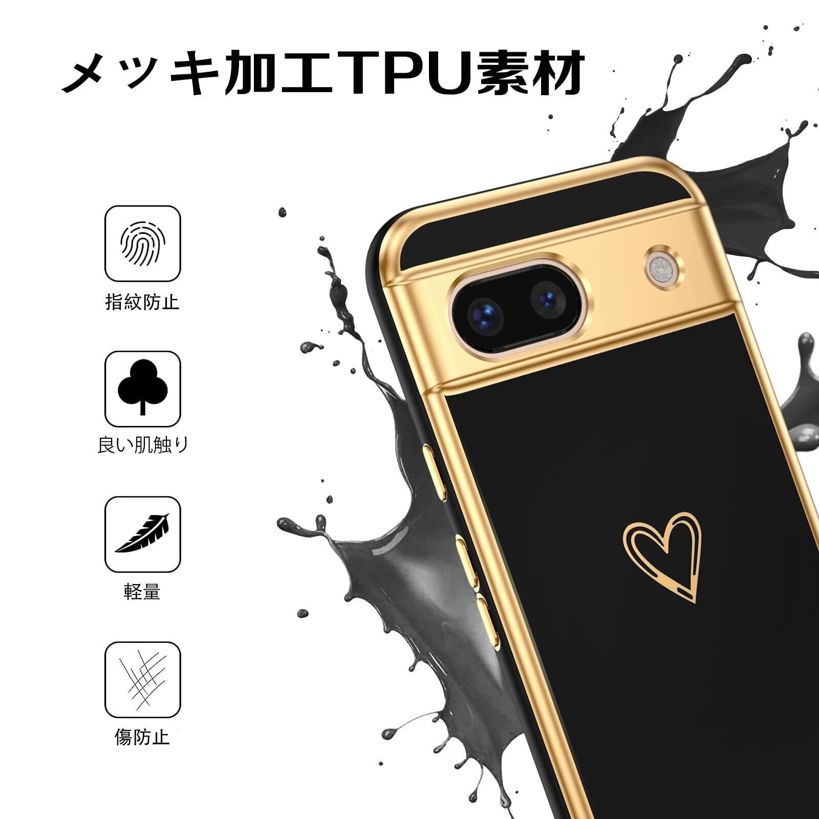 【在庫処分】VENINGO pixel 8a ケース 米軍MIL規格 全面保護 耐衝撃 レンズ保護 愛の心のパターン 滑り止め 黄変防止 軽量 柔軟 TPUバンパー ストラップホール付き google pixel 8a カバー google ピクセル8a 用カバー ブラック
