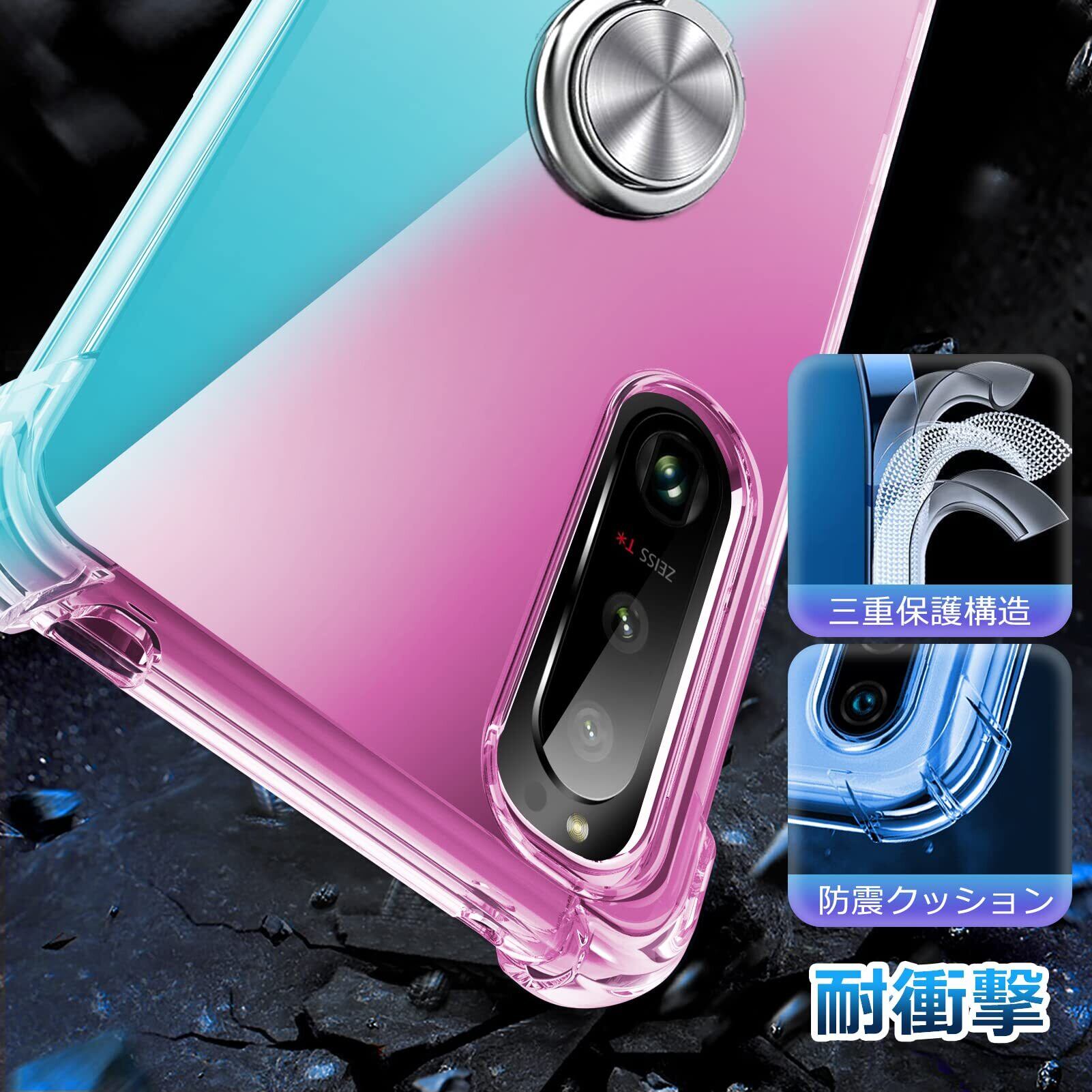 Google Pixel 7a ケース 耐衝撃 リング TPU クリア 透明 TPU Pixel 7a カバー クリア 透明 スリム 薄型 グラデーション スタンド機能 車載ホルダー 黄変防止 指紋防止 防塵 滑り防止 人気 携帯カバー ピンク+緑D634-pixel 7a-03(cp