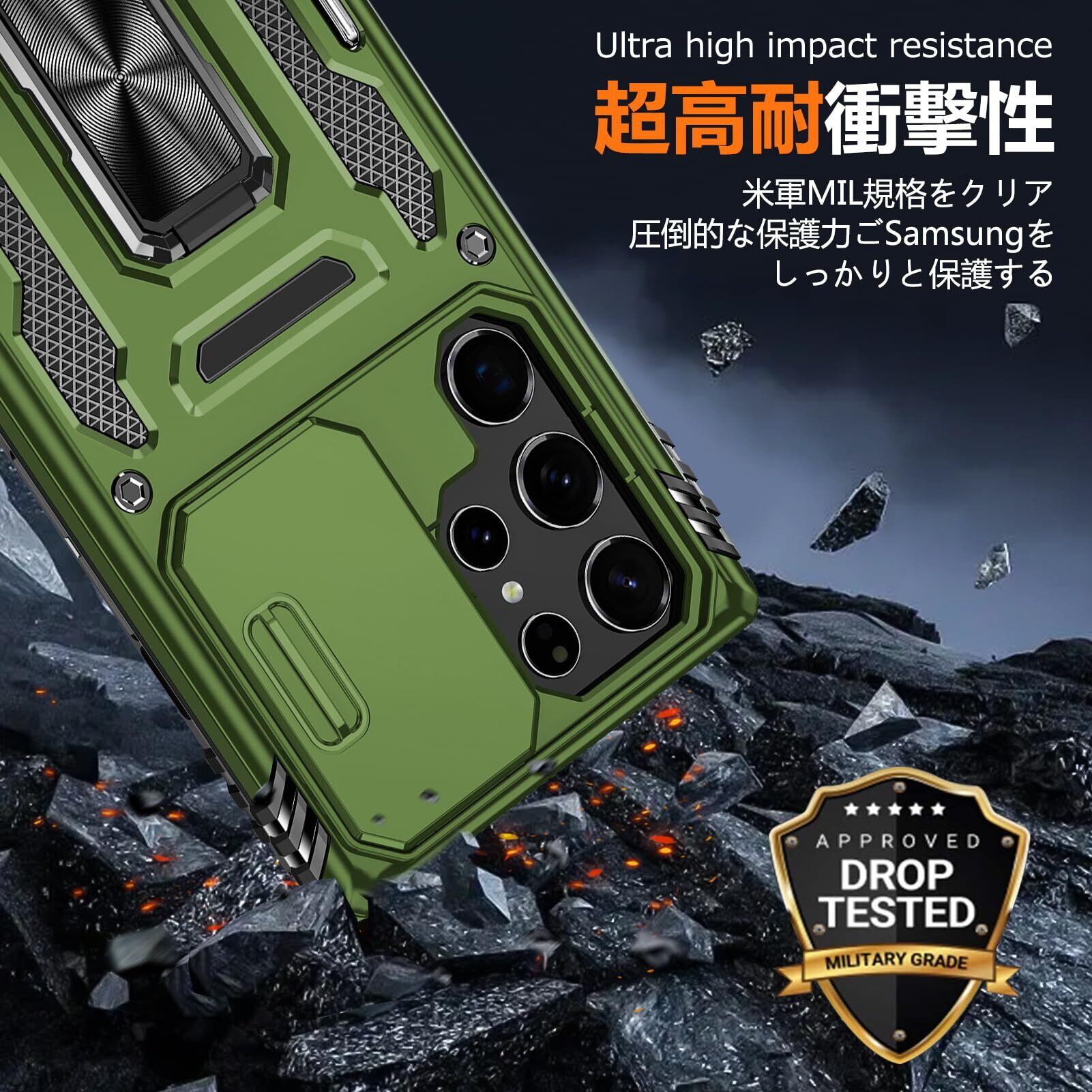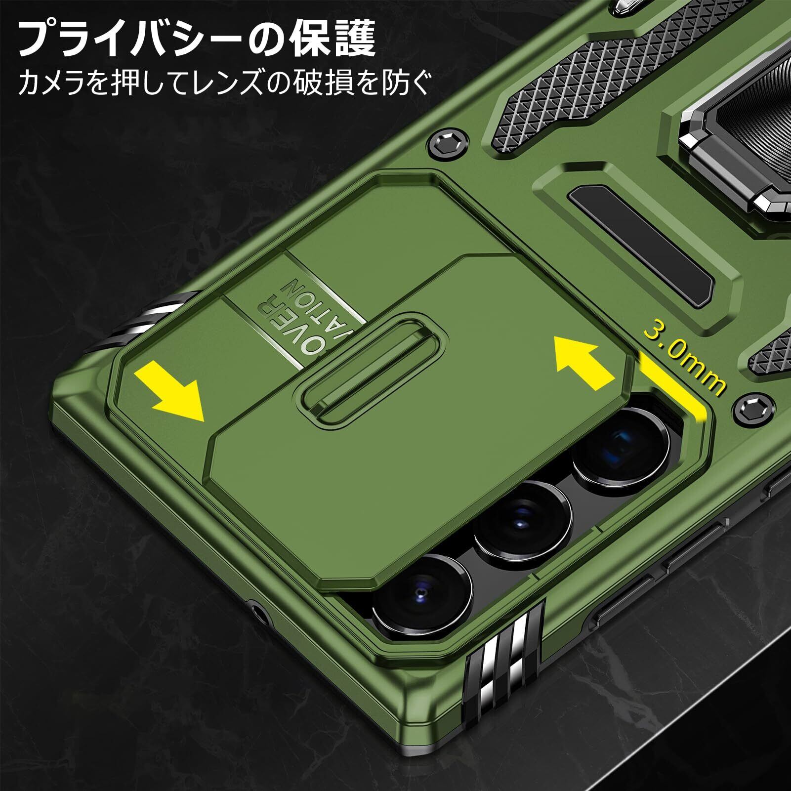 【360度回転式リング付き】360度回転可能、180角度調節可能、片手で携帯を操作でき、滑り止め、強奪、落下などのことを防げます。ケースを横置きにするとスタンド機能になり、持たず動画鑑賞などを楽しむことができます。