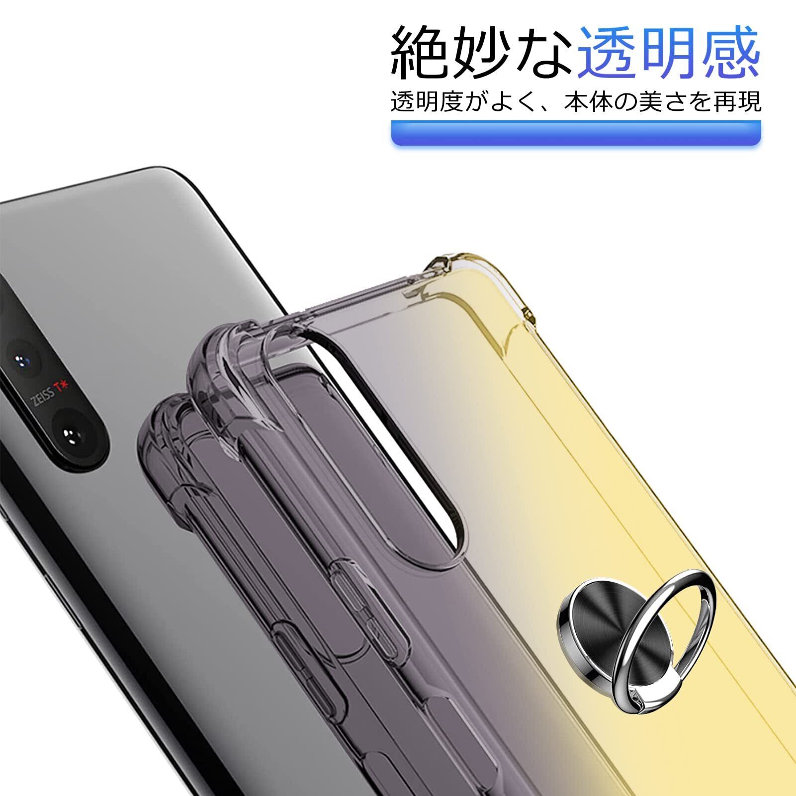 【特価商品】Xperia 10 III ケース 耐衝撃 リング クリア 透明 SO-52B/SOG04 カバー 耐衝撃 TPU クリア 透明 スリム 薄型 グラデーション スタンド機能 車載ホルダー TPU 黄変防止 指紋防止 防塵 滑り防止 人気 携帯カバー 黑+金D634-Xperia 10 III-06